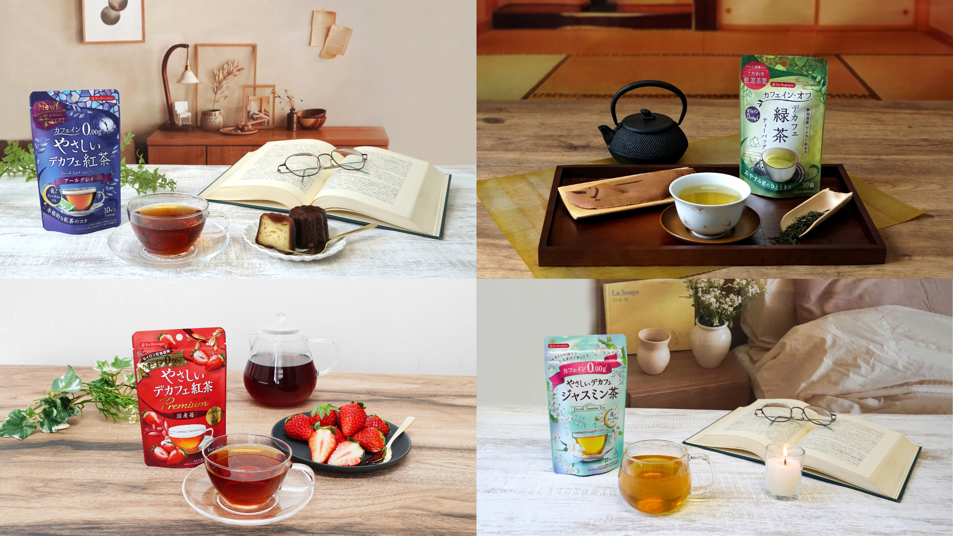 今回リニューアルする「ティーブティック デカフェ日本茶シリーズ」を含めて10種類以上の多彩なフレーバーを展開しているので、好みの味や香りのものを選んでいただけます。これからカフェイン・マネジメントを意識したい方にもおすすめです。