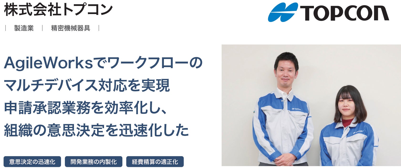 株式会社トプコンが、ワークフローシステム「AgileWorks」導入による業務効率化で143時間/月の業務削減を実現