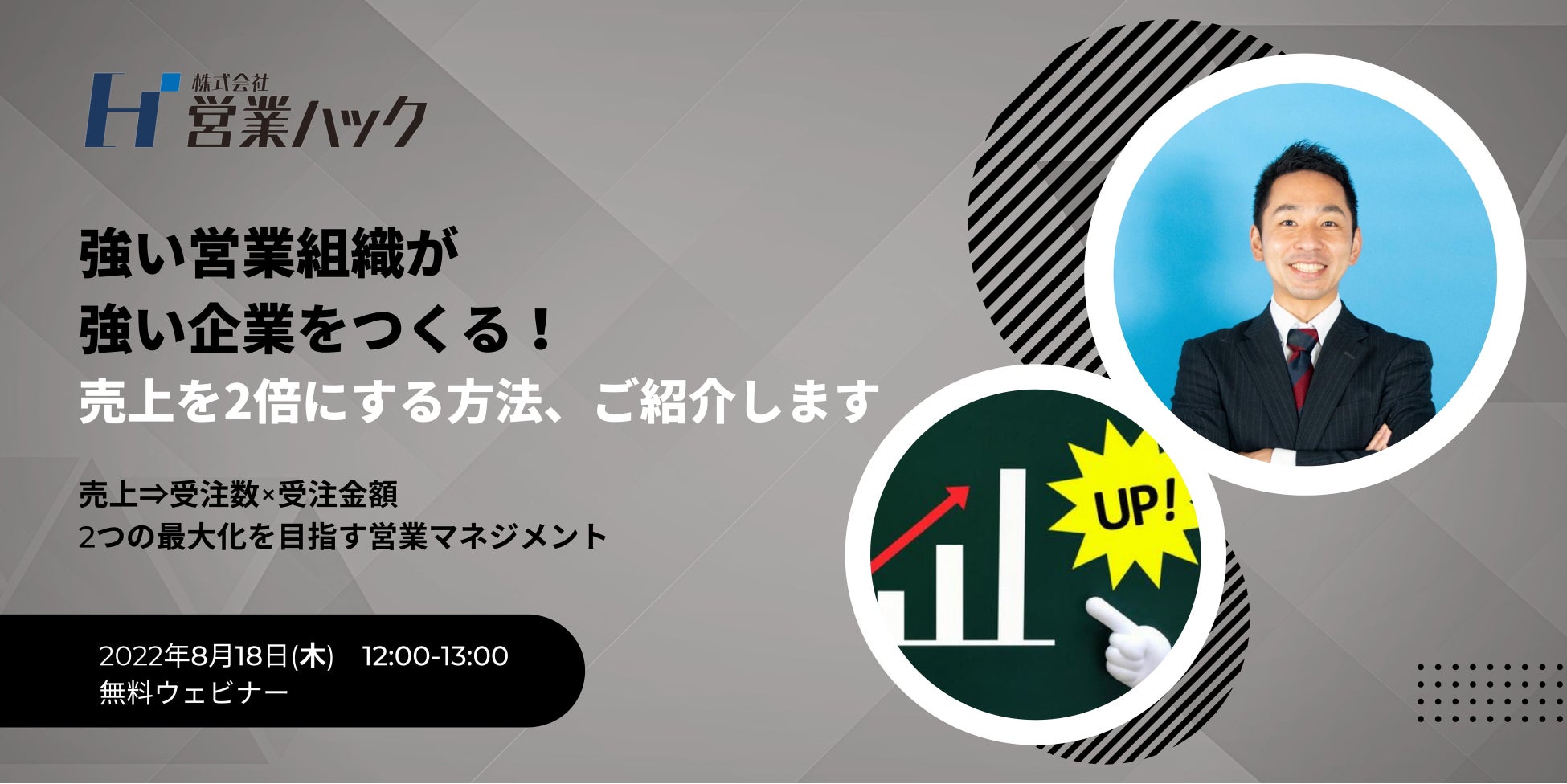 強い営業組織が強い企業をつくる!売上を2倍にする営業マネジメントをご紹介します|8/18(木)12時~