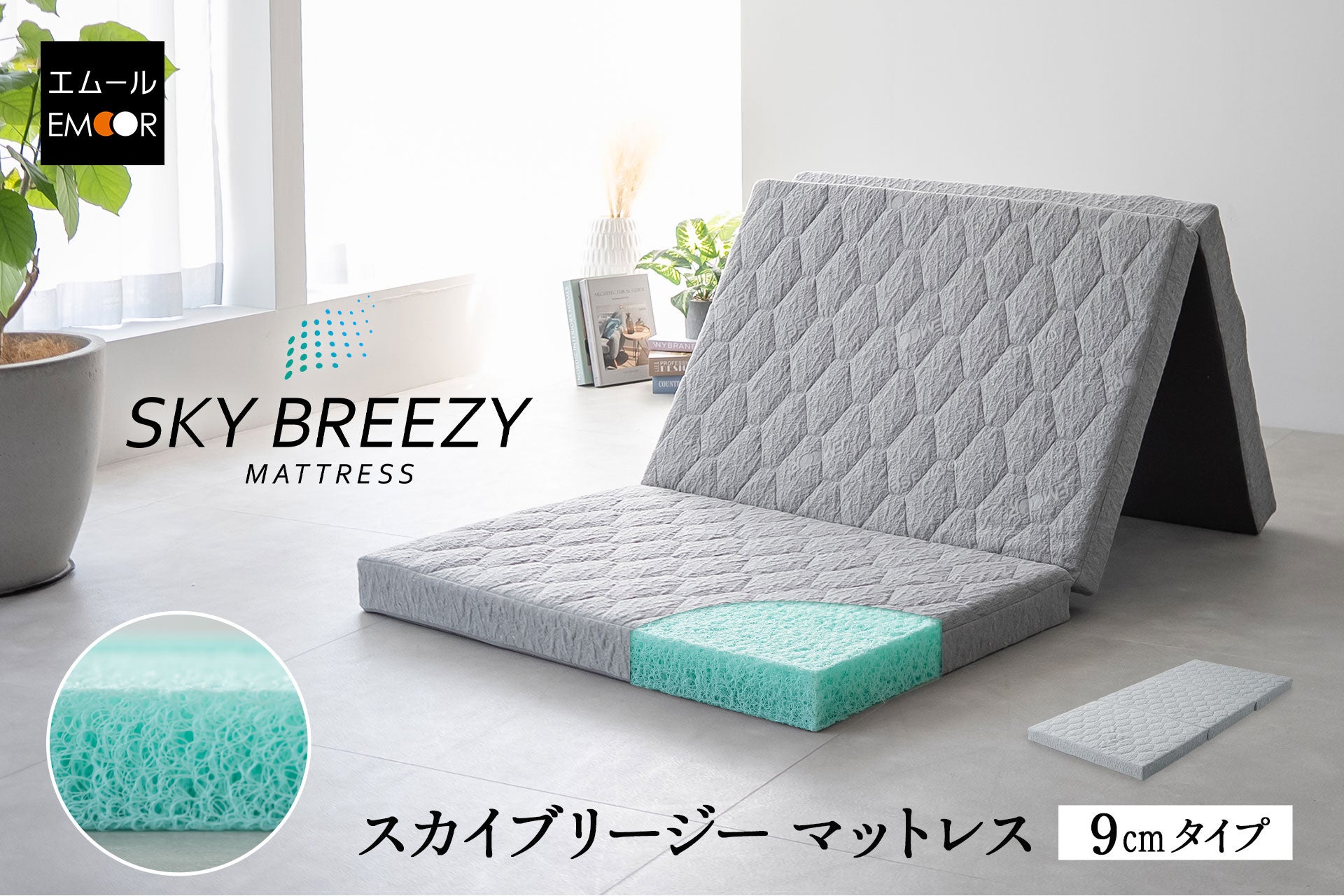 「身体に合った寝る・座る・たたむ」を提供する健康家具ブランドEMOORを展開する株式会社エムール(東京都立川市:代表取締役 高橋 幸司/以下エムール)は、2025年6月24日より、「快眠」と「安心」を同時に叶える『スカイブリージーマットレス/9cmタイプ(以下、スカイブリージーマットレス)』の販売を開始しました。