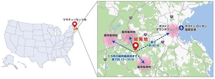 ボストン中心部やボストン・ローガン国際空港※3まで車で約40分、周辺の雇用地や大型スーパー、ショッピングモールまで車で約10分以内と通勤や生活にも便利なエリアです。近年ボストンはバイオテクノロジーや医療関連の企業の集積が進んでおり、今後も安定した雇用環境を見込めます。また、それらの企業で働く社員の増加などにより本エリアでは住宅が不足しているため周辺物件の賃貸状況は好調で、中長期的にも住宅需要の増加が期待できます。