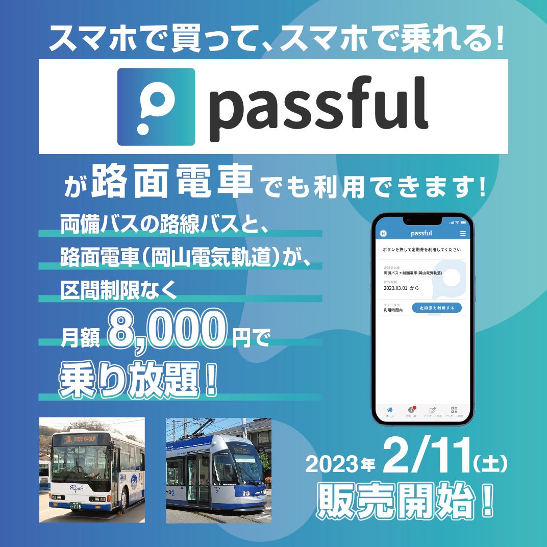 【両備グループ】スマホで買ってスマホで乗れる!デジタル定期券「passful(パスフル)」に新オプションプラン 両備バス全線(一部除く)に加え 岡電の路面電車も乗り放題に