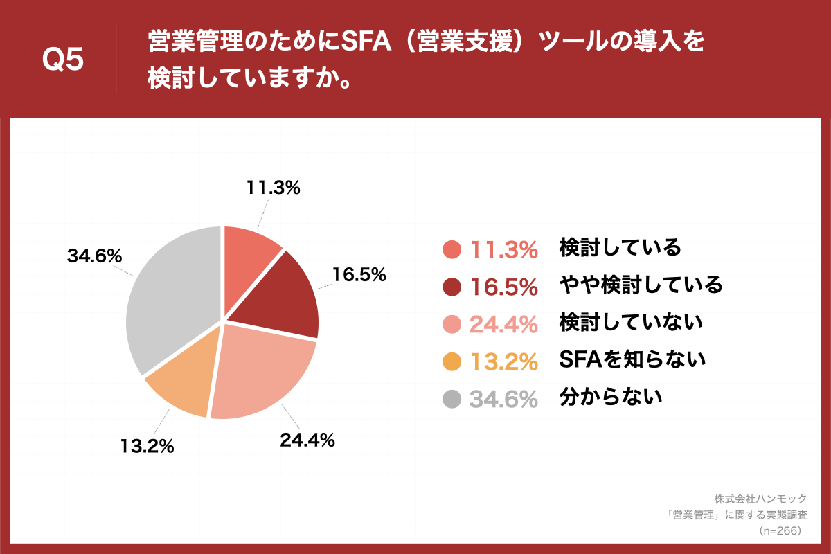 - 営業管理のために「SFA(営業支援)ツールの導入」を検討しているのはわずか27.8%