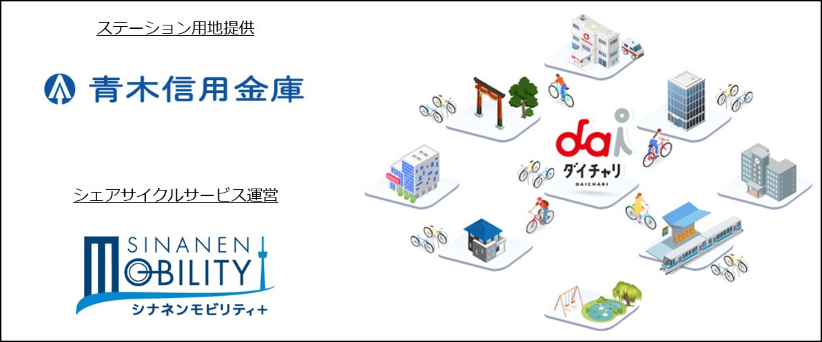 青木信用金庫は、これまでも、心のかよう金融サービスを通じて、地域と地域の皆さまに貢献・協力・奉仕するという経営理念のもと、地域のニーズに応じた店舗資産の有効活用を積極的に行ってきました。今回、本店営業部の敷地を活用し「ダイチャリ」のステーションを設置することで、お客様の交通手段の多様化による利便性の向上や地域活性化といった効果が期待されます。