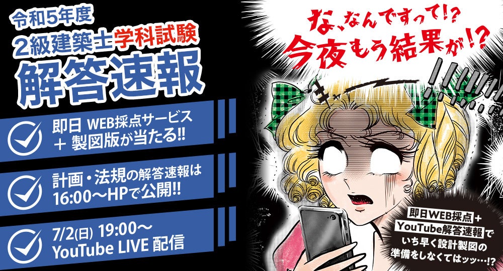 【令和5年度2級建築士 学科試験】無料「即日WEB採点サービス」試験当日19:00頃より採点結果配信!