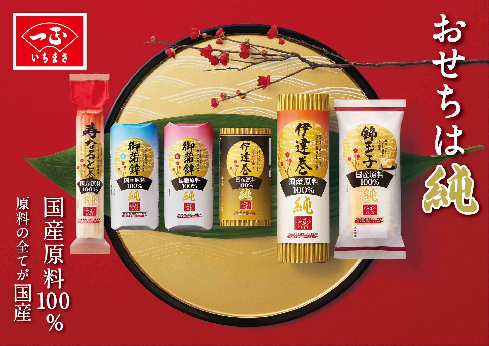 一正蒲鉾株式会社(本社所在地:新潟県新潟市東区、代表取締役 社長執行役員:野崎正博)は、2025年12月1日(月)~2026年1月4日(日)の間、いちまさ公式X(旧Twitter)から応募可能な「10周年ありがとう 国産原料100%『純』お年玉キャンペーン」を実施します。発売10周年を迎える国産原料100%『純』シリーズや、年末年始にもらって嬉しいいちまさオリジナルグッズなどが入った「年末お楽しみ福袋」や「年始のお年玉(デジコ1,000円分)」が当たります。 第一弾キャンペーンでは、我が家のおせちのこだわりをリプライで答えると当選確率が2倍に。是非、皆さんのご家庭のおせちのこだわりを教えてください!第二弾キャンペーンでも、新年のおせち料理が待ち遠しくなる企画を実施予定です。今年の締めくくりのひとつとして、キャンペーンに参加して新しい年を迎える準備をしてみてはいかがでしょうか。