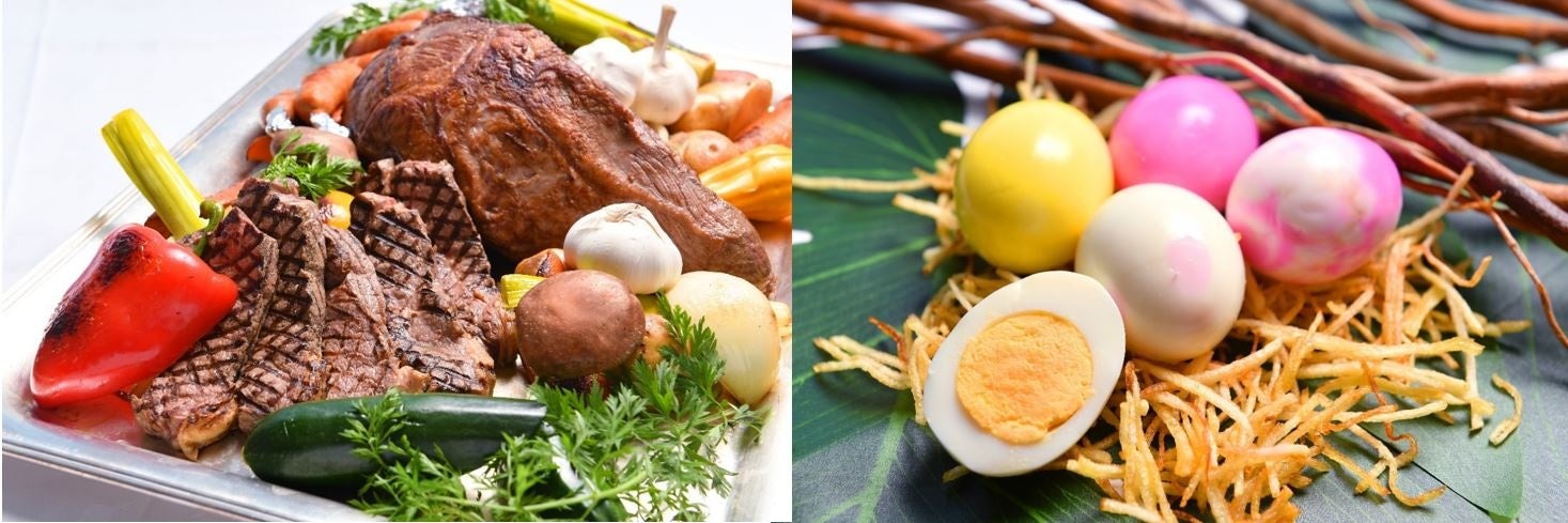 骨付き肉に見立てたソーセージ、恐竜をイメージしたスペシャルカレー、恐竜ゆで卵など、恐竜をテーマにしたフード・スイーツ全60種類が食べ放題。お子さまも大人も心躍る、見て食べて楽しめるグルメをご提供いたします。