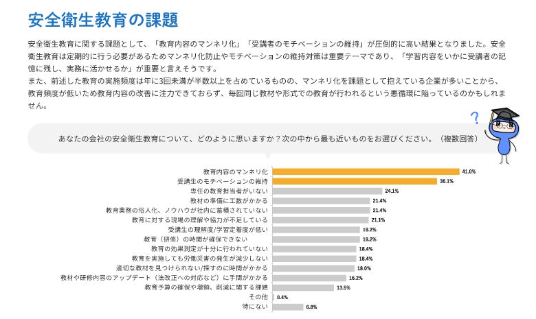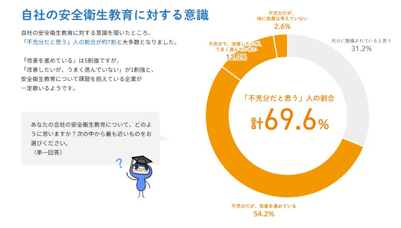 約7割が自社の安全衛生教育を「不充分」と回答 マンネリ化や受講者のモチベーション維持に課題、効果的な教材の活用が鍵に