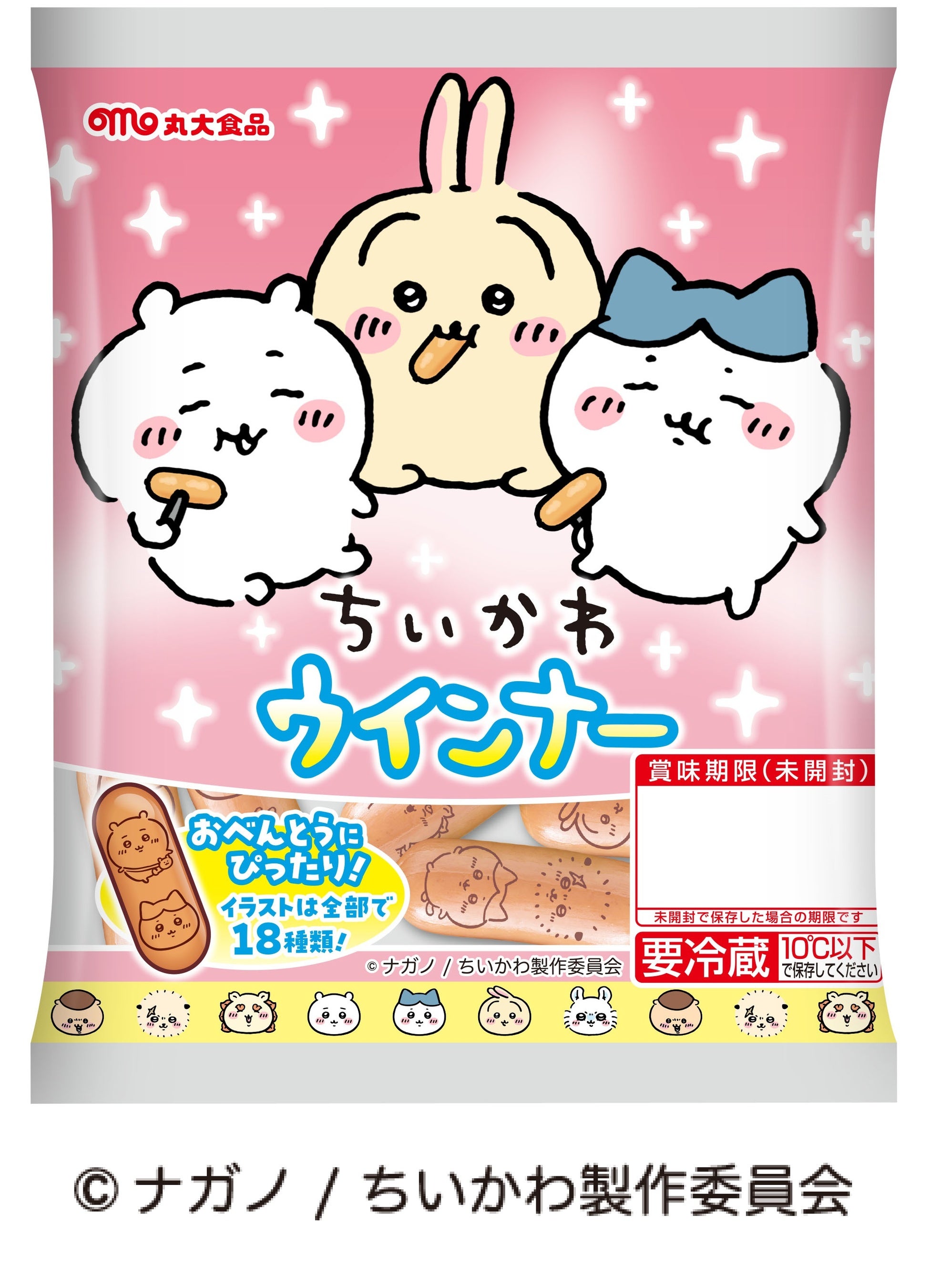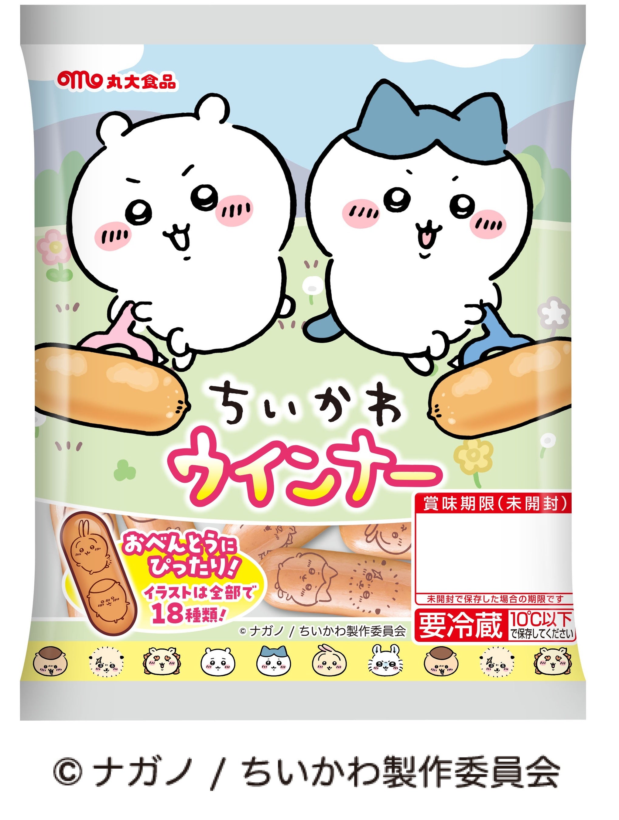 『ちいかわ』のキャラクターたち18種類のイラストを、ウインナーの表面にプリントしました。