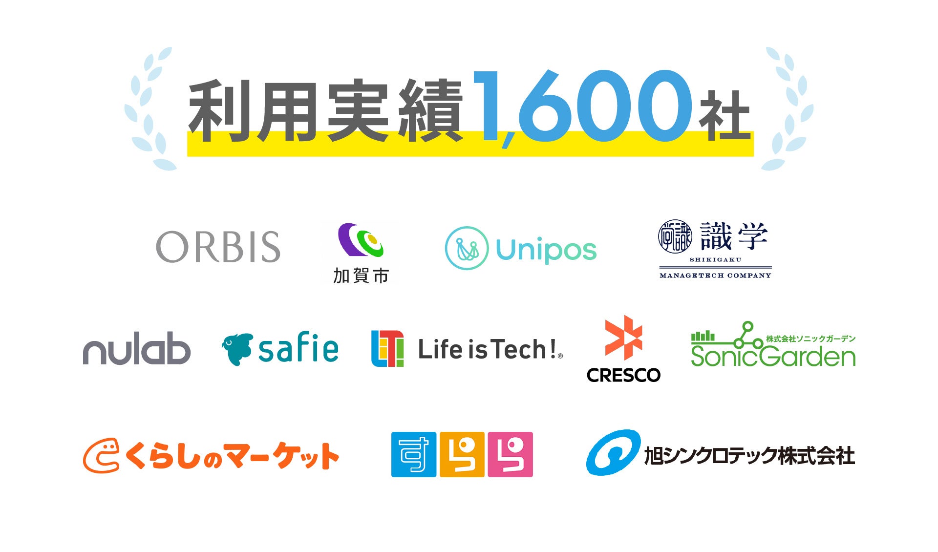 これまでに、8,000人以上の従業員を抱えるプライム市場上場企業、グロース市場にIPOを果たしたテクノロジー企業、ベンチャーキャピタルから数十億円の資金調達をしている未上場企業、創業から間もない数名〜10数名の規模の企業まで、累計1,600社導入および利用者20万ユーザー突破の実績があります。