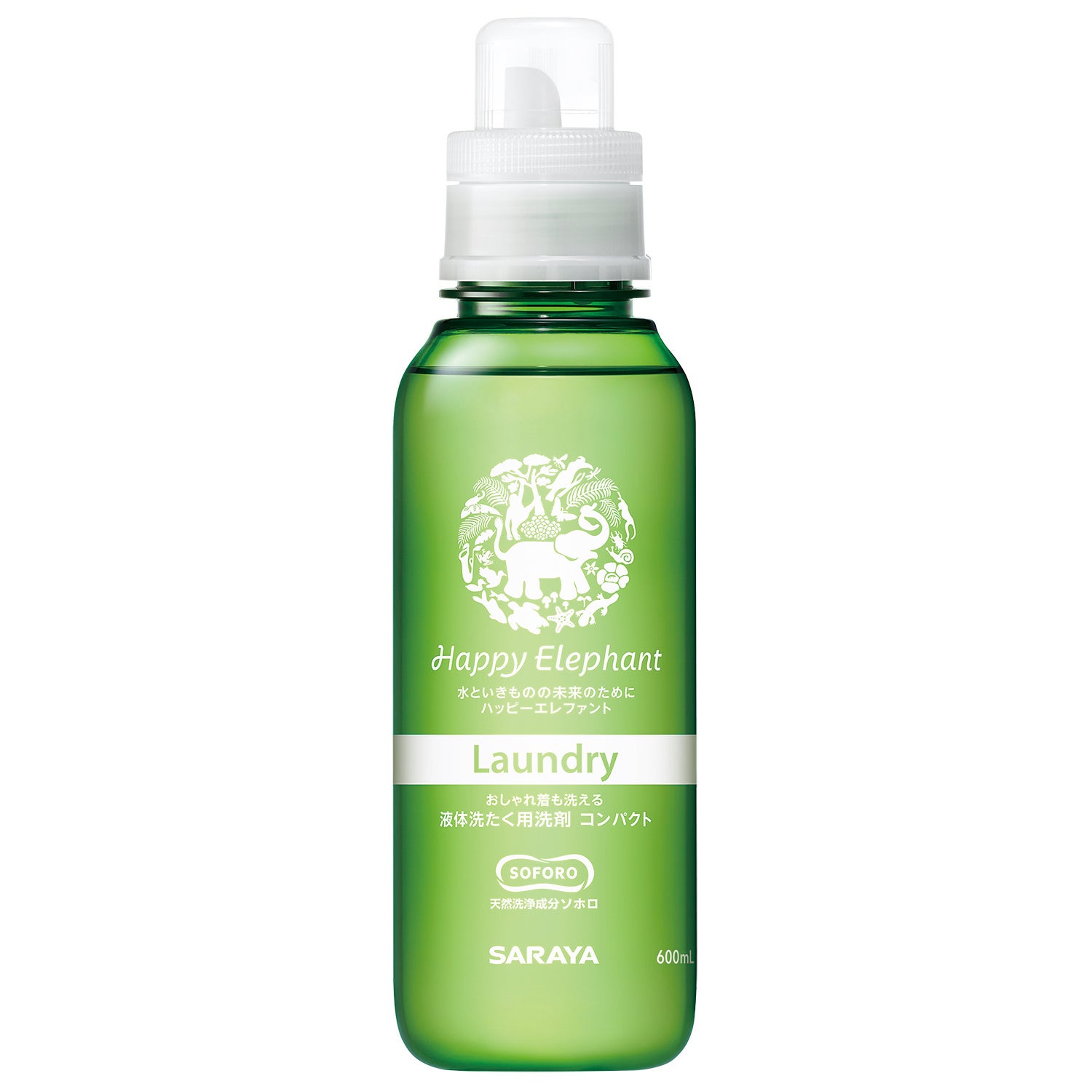 「ハッピーエレファント」は、酵母が発酵により生みだす独自開発の天然洗浄成分「SOFORO(ソホロ)」を配合し、洗浄力と環境へのやさしさを両立させたサステナブルな洗剤シリーズです。植物性の洗浄成分を使用し、石油系界面活性剤をはじめ、合成香料、着色料は無配合。カーボンニュートラル処方を実現し、排水後は微生物によってすばやく分解され地球に還ります。