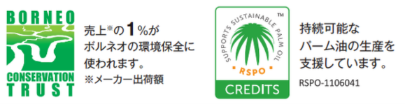 ・売上(※メーカー出荷額)の1%で原料生産地マレーシア・ボルネオ島の環境保全活動を支援
