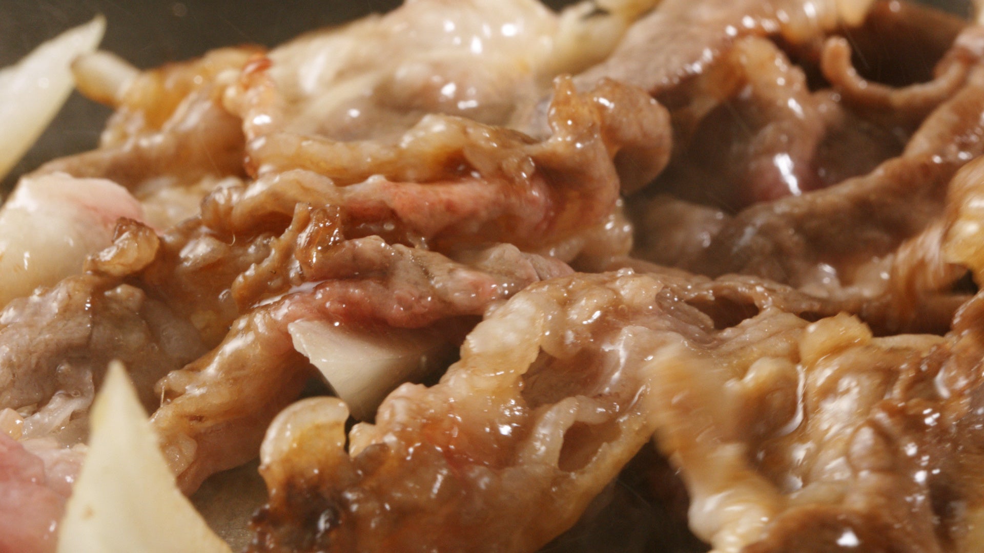 ご注文をいただいてから、牛肉とたまねぎ、醤油ベースのだしの効いた割り下を入れて、じゅわっとを焼き上げます。お客さまの目の前で調理するからこそ、焼き上がる音や香ばしい香りが食欲をそそる一杯です。
