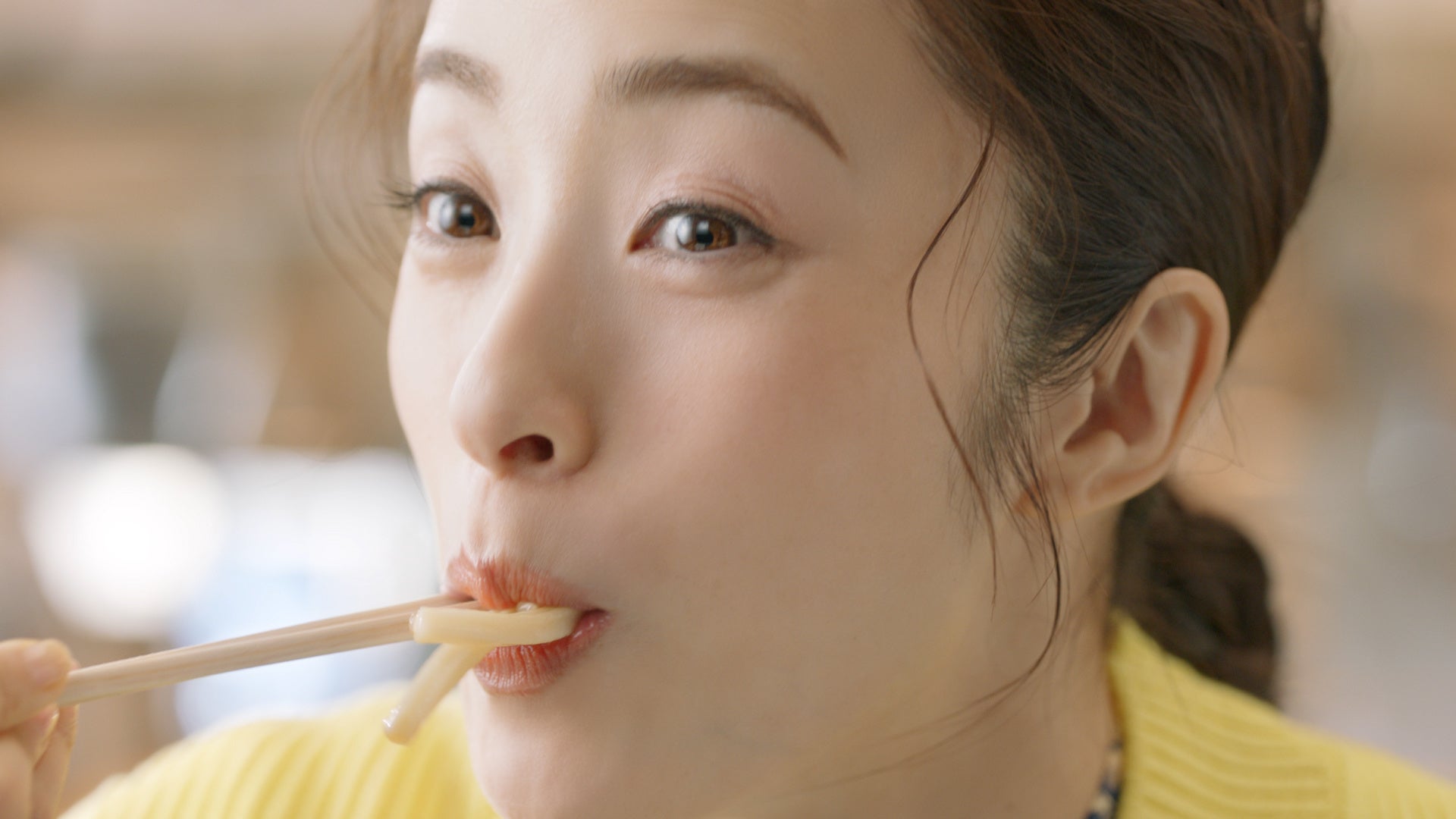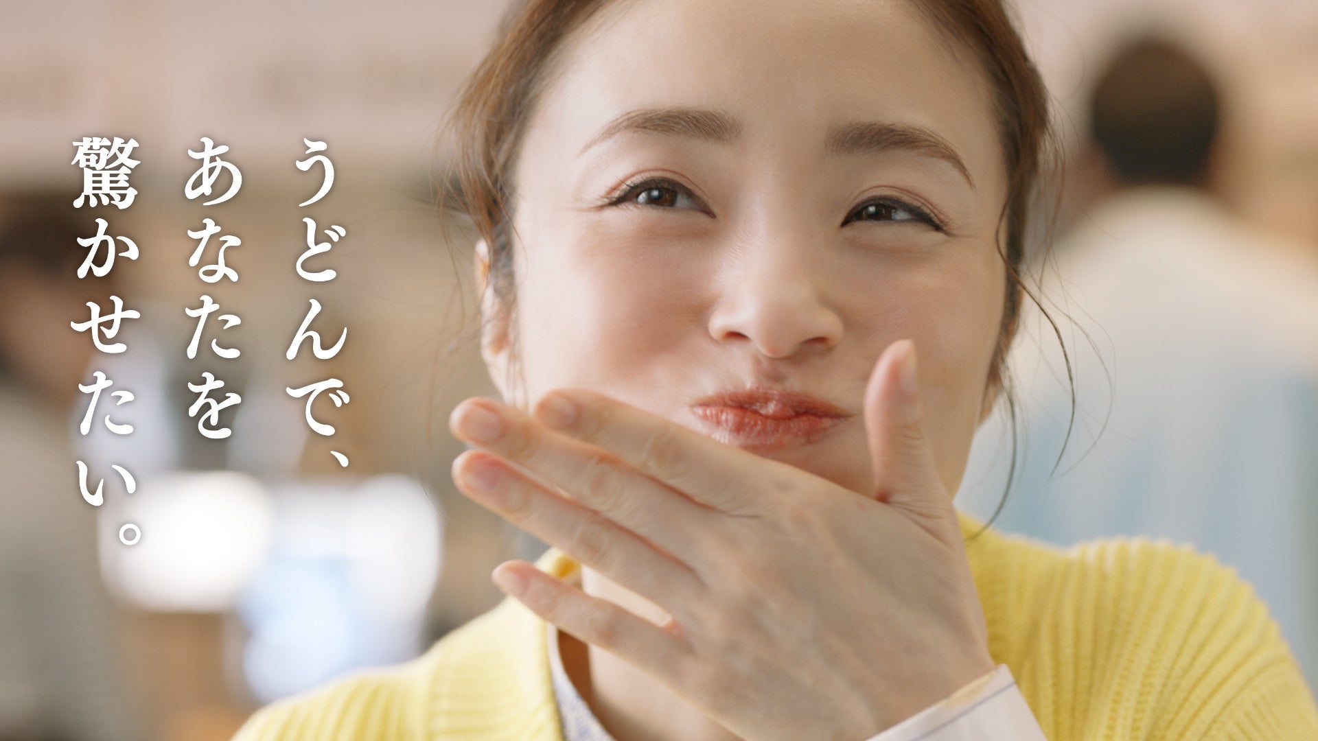 上戸さんによるナレーションの後には、『焼きたて肉うどん』のもちもちの麺と焼きたての牛肉を一緒に味わい、『山盛りあさりうどん』のあさりもぱくっと一口。それぞれの味わいを満面の笑顔で楽しみながら、「春は何度も行かなくちゃ!」と口を拭い、おいしさに満足した幸せそうな表情で締めくくります。
