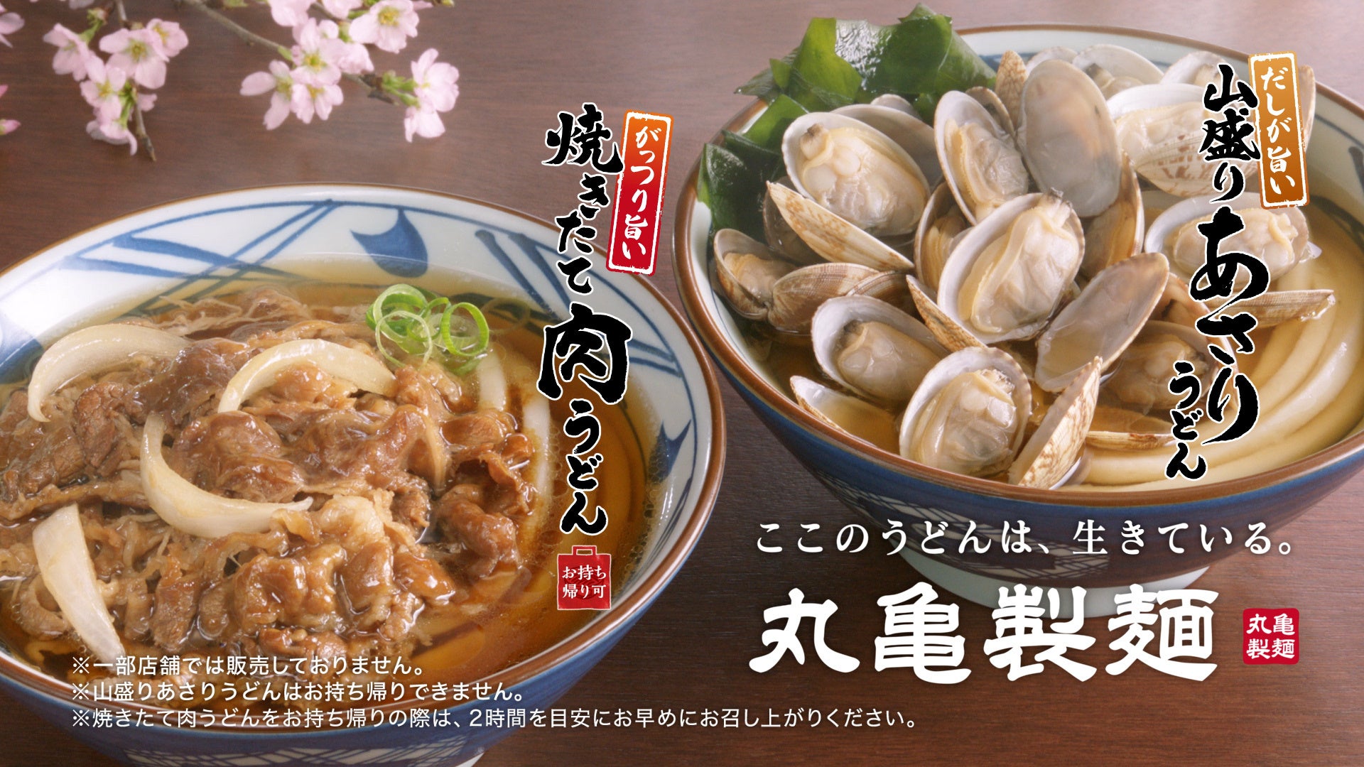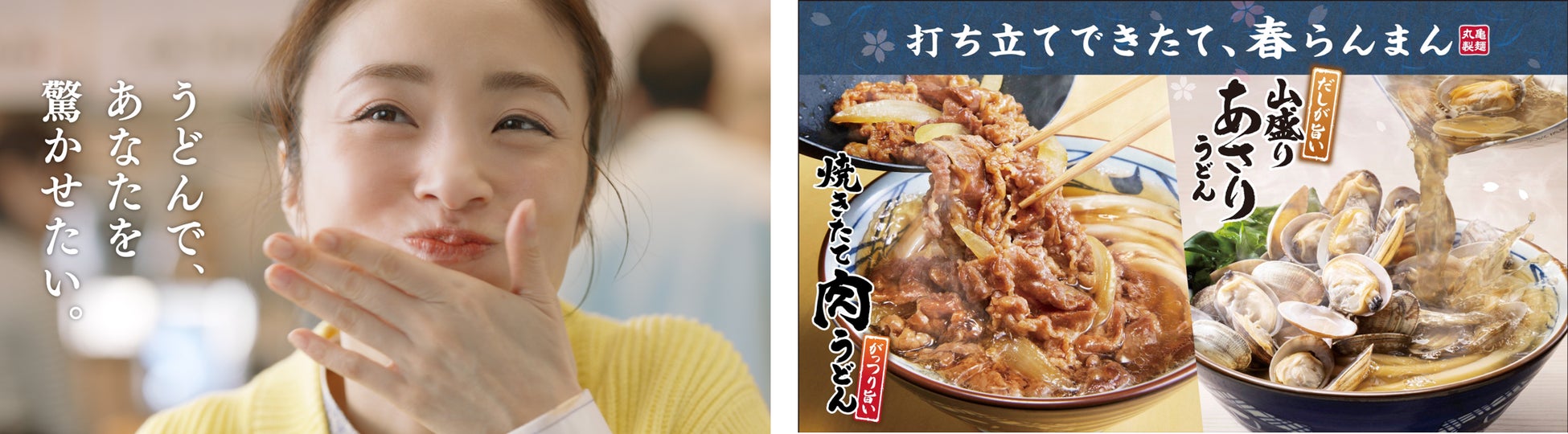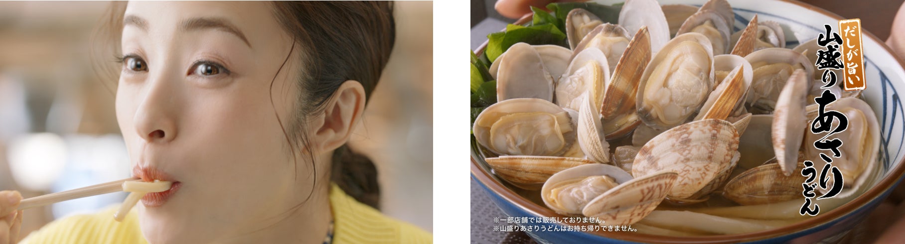 丸亀製麺の春の2大看板商品、『焼きたて肉うどん』と『山盛りあさりうどん』のTVCM。