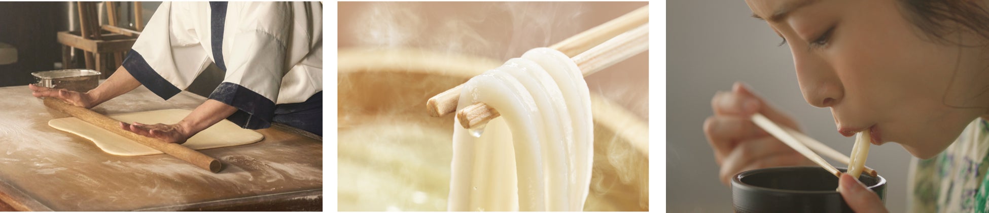「ここのうどんは、生きている」をブランドメッセージに掲げ、日々、食の感動体験を追求し手づくりの「おいしいうどん」をお客さまに提供しています。徹底的に鮮度にこだわり、国内800を超えるすべての店で、一軒一軒、職人が手間を惜しまず「おいしさ」を日々つくり続けています。
