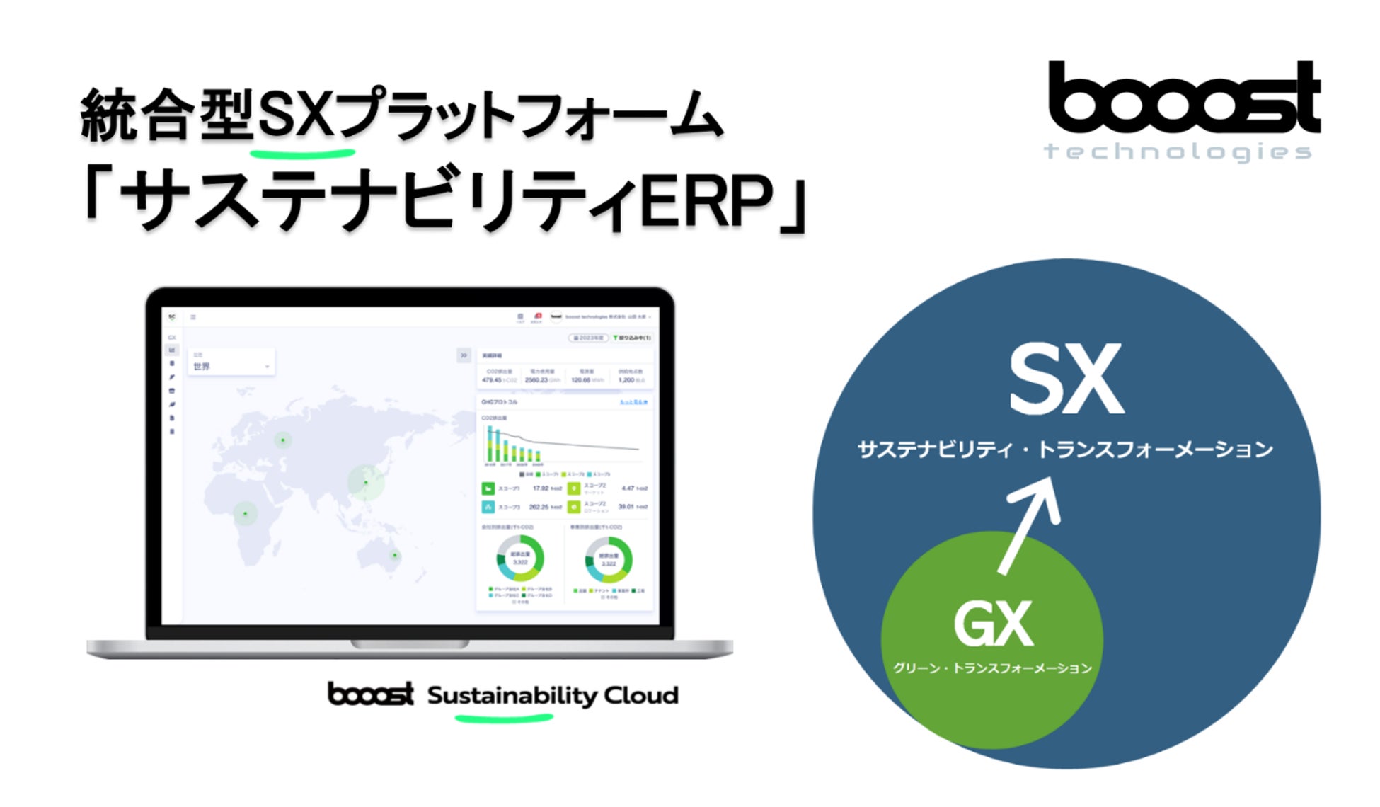 booost technologies, Inc. , which supports the acceleration of corporate SX through its integrated SX platform, "Sustainability ERP*,"has been providing “boost Sustainability Cloud” as a product to support the promotion of corporate GX (Green Transformation). However, in order to provide this product as a product that supports not only GX but also corporate sustainability management more broadly, flexibly, and seamlessly, from September 2024, “boost Sustainability Cloud” will be integrated with “boost Sustainability Cloud” as an SX product. Sustainability Cloud” has been redefined as an integrated SX platform ‘Sustainability ERP’.