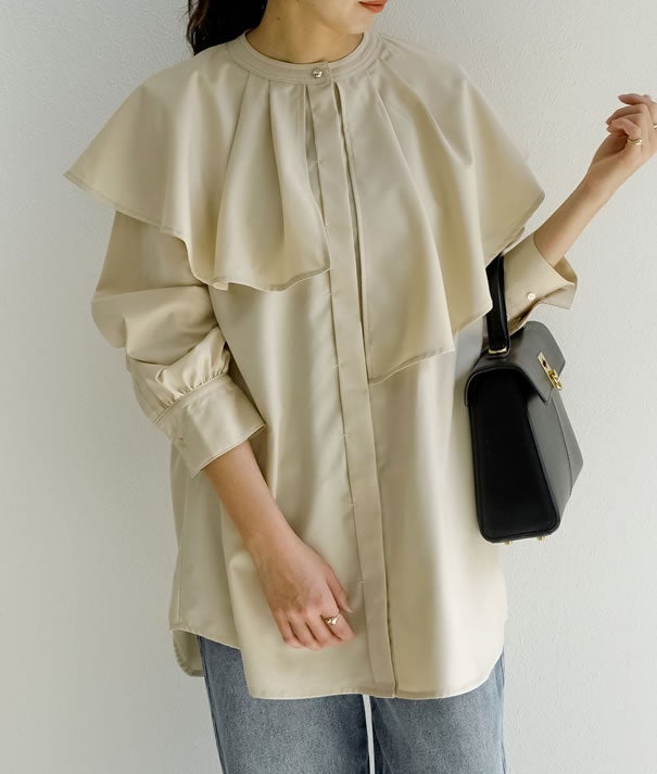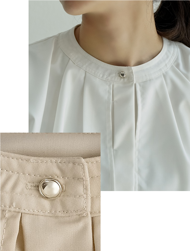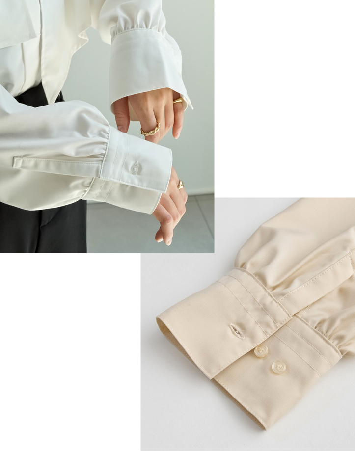 3.バンドカラーの襟部分に合わせ、袖にもステッチを入れ高見えするデザインに。