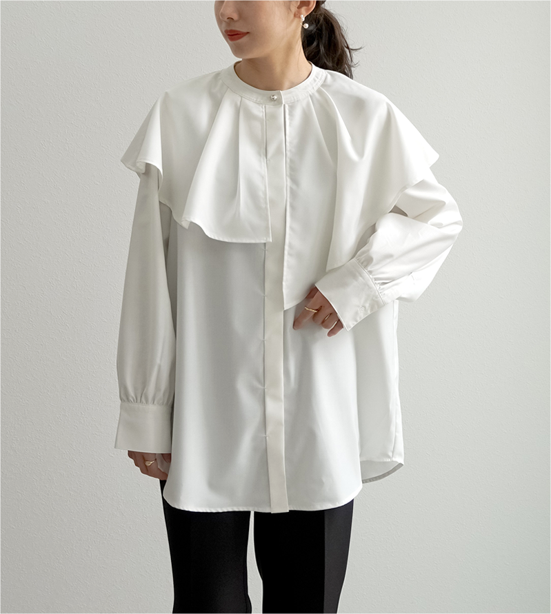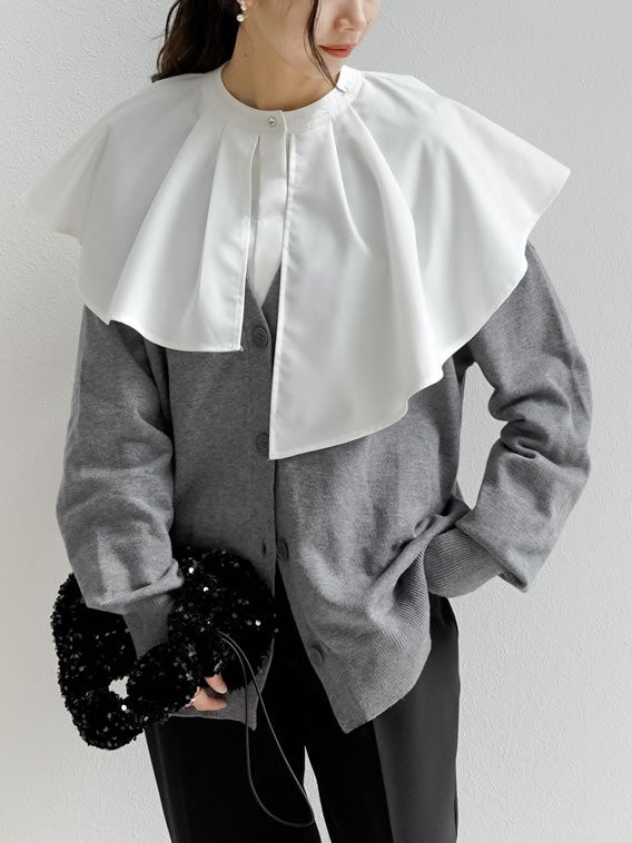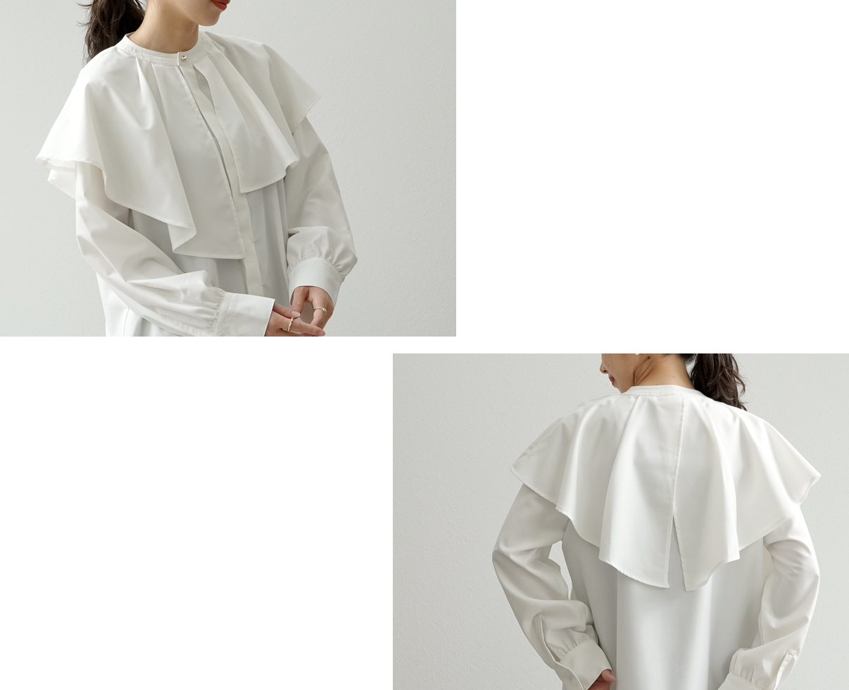 1.アシンメトリーのビッグカラーで旬の雰囲気を演出。オフィスやセレモニー、お子様の参観日などのキレイめスタイルにも相性抜群です。