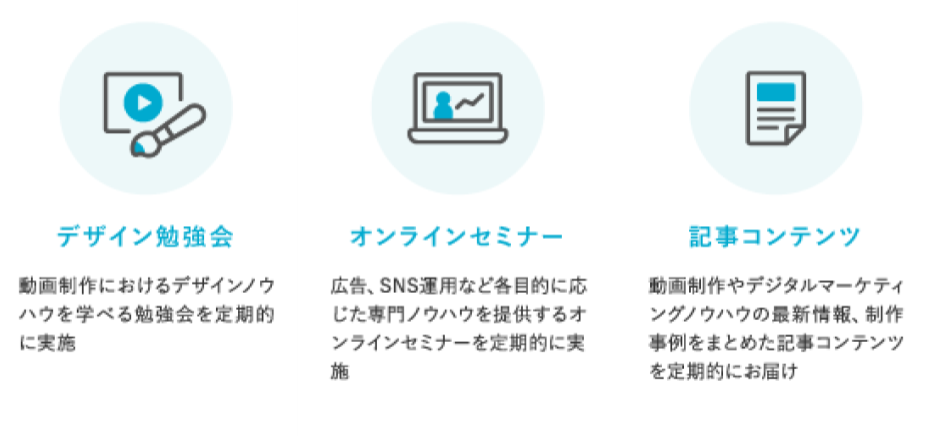 ➁広告、SNS運用など動画活用の各目的に応じた専門ノウハウを提供する「オンラインセミナー」
