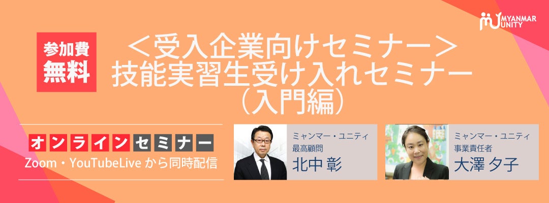 ※今回のセミナーは受け入れ企業向けの内容であり、監理団体、人材会社、登録支援機関、行政書士様などの専門家の皆様向けの内容ではありません。