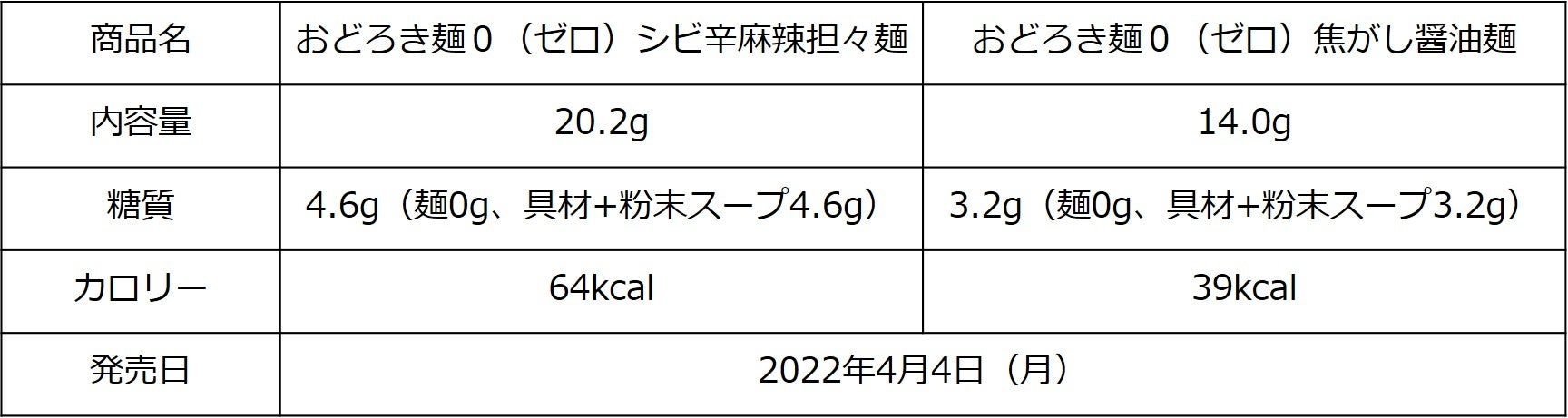 美味しく手軽に糖質コントロール『おどろき麺0(ゼロ)シビ辛麻辣担々麺』2022年4月4日新発売『おどろき麺0(ゼロ)焦がし醤油麺』同日リニューアル発売
