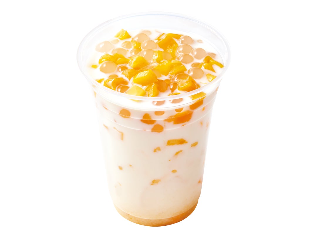ミルクのコクと、ごろごろにカットされたマンゴーの果肉の甘さをしっかりと楽しむことができる、フルーツドリンクです。もちもちとした食感のタピオカがたまらない、夏季限定商品です。