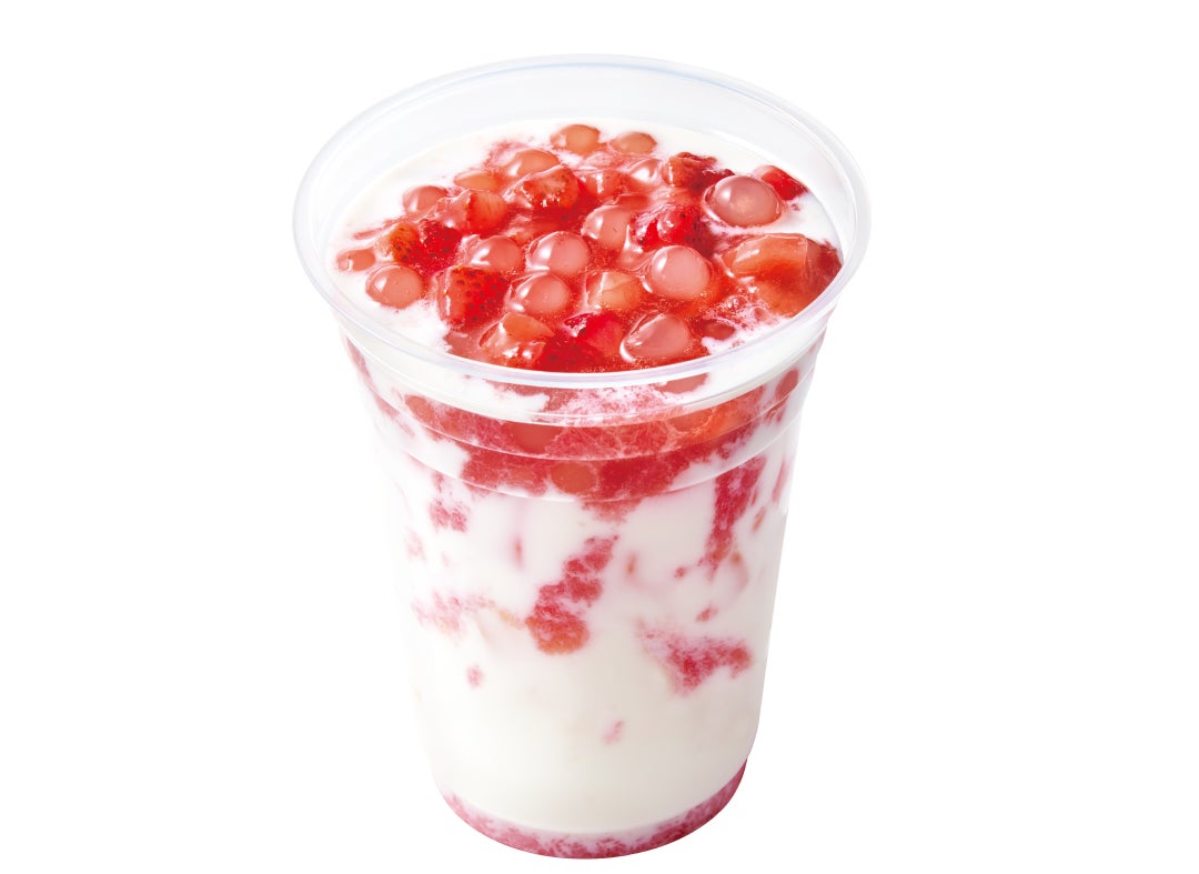 ミルクのコクと、ごろごろにカットされたストロベリーの果肉の甘さをしっかりと楽しむことができる、フルーツドリンクです。もちもちとした食感のタピオカがたまらない、夏季限定商品です。