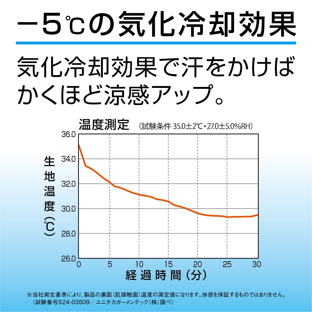 -5°の気化冷却効果で汗をかけばかくほど涼感アップ。プールや海、アウトドアでもしっかり紫外線ケア。劣化しにくい塩素対応糸を採用。