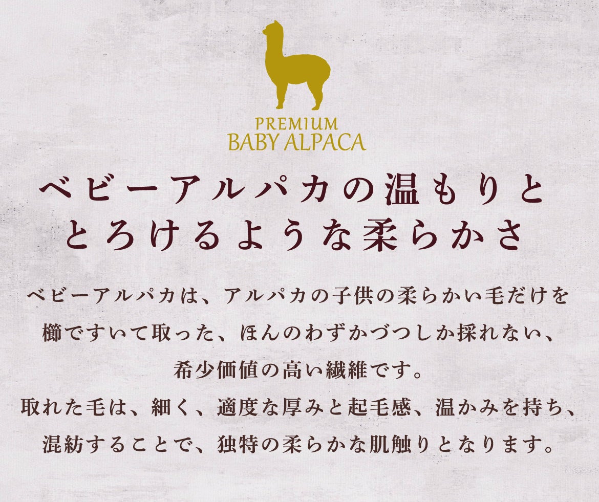 ・タイトル:ニットのように暖かいけど軽い。チクチクしづらい肌触り。ベビーアルパカストール
