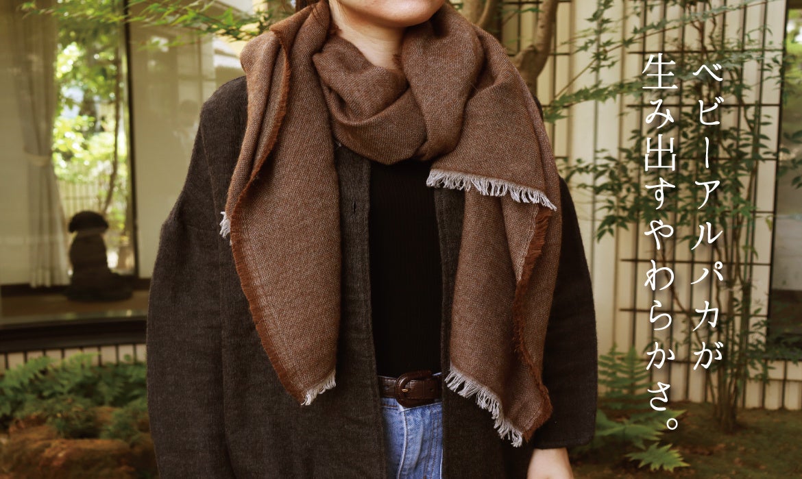 ニットのように暖かいけど軽い。チクチクしづらい肌触り。ベビーアルパカストール。がクラウドファンディングサイト「Makuake」にて先行販売開始!