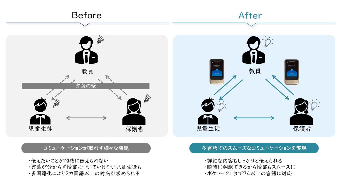 富士ソフトは、2024年11月よりポケトーク株式会社が開発・販売するAI通訳機「ポケトーク S2」の取り扱いを開始し、製造業の工場現場をはじめ、急増する訪日外国人客に対応する店頭、さらには海外出張時のビジネスシーンなど、さまざまな「現場」における円滑なコミュニケーションを支援してまいりました。そして今般、「教育現場」の多国籍化に伴うコミュニケーション課題の解決を目指し、3月18日(火)より、「ポケトーク S」の学校向けのモデルの取り扱いを開始いたします。