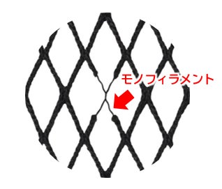 ネットの芯材にモノフィラメントを入れることで、ネットの目合いが開いた形状を保ちます。そのため、敷設面(コンクリートなどの法面)との間に”浮き”ができやすく、万が一の際、目合いの”浮き”に指が掛けやすくなっています。