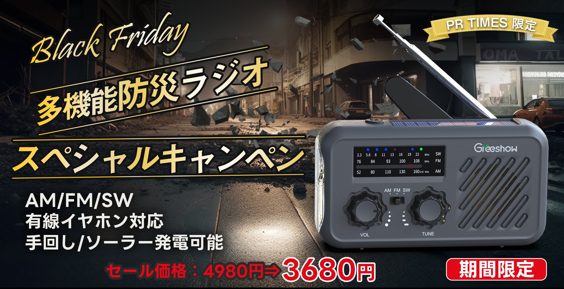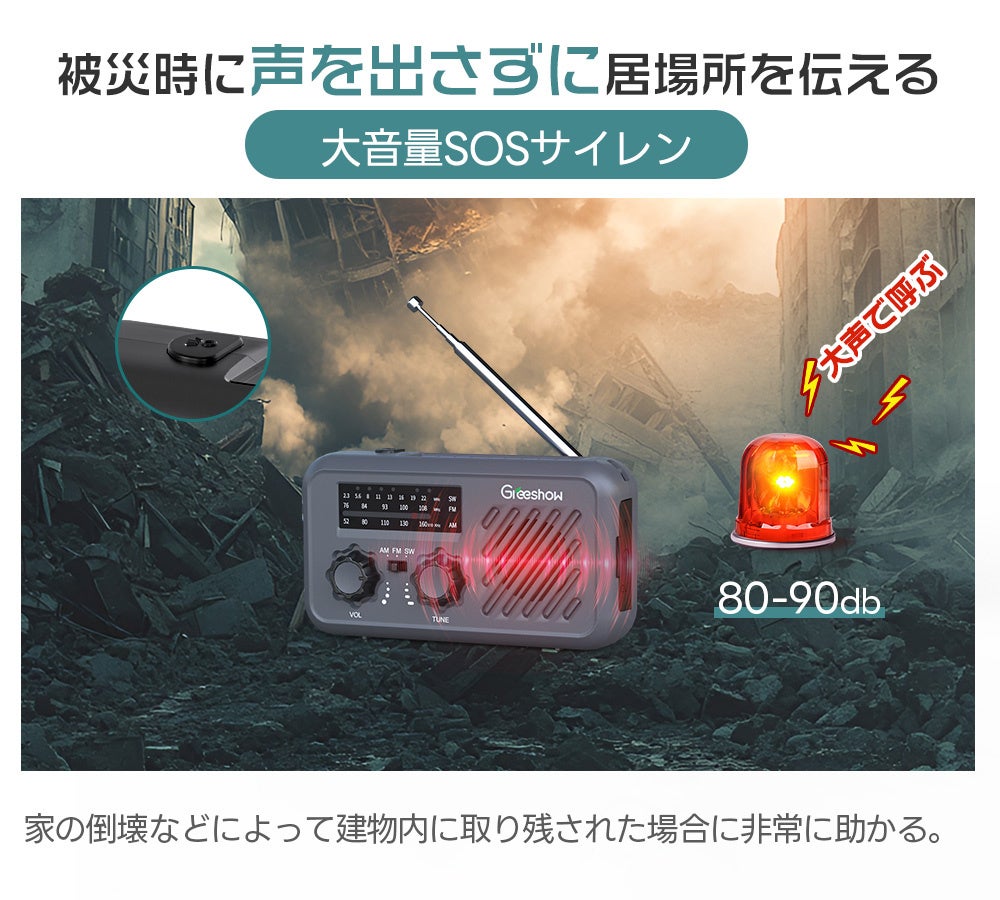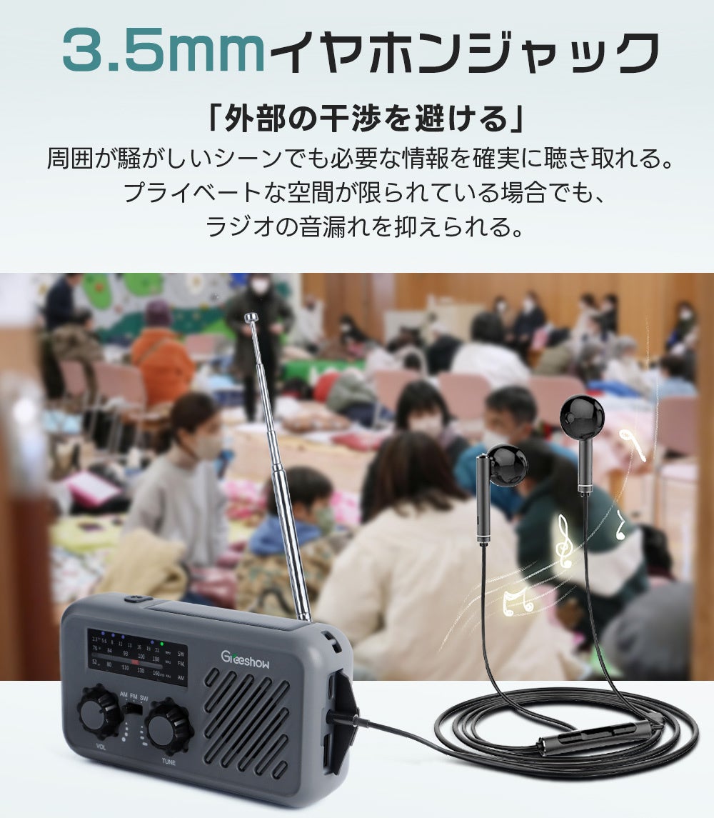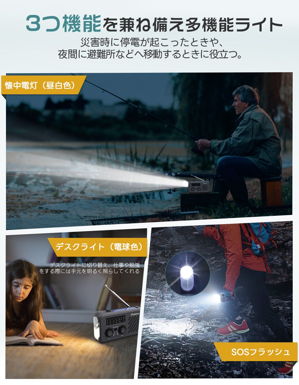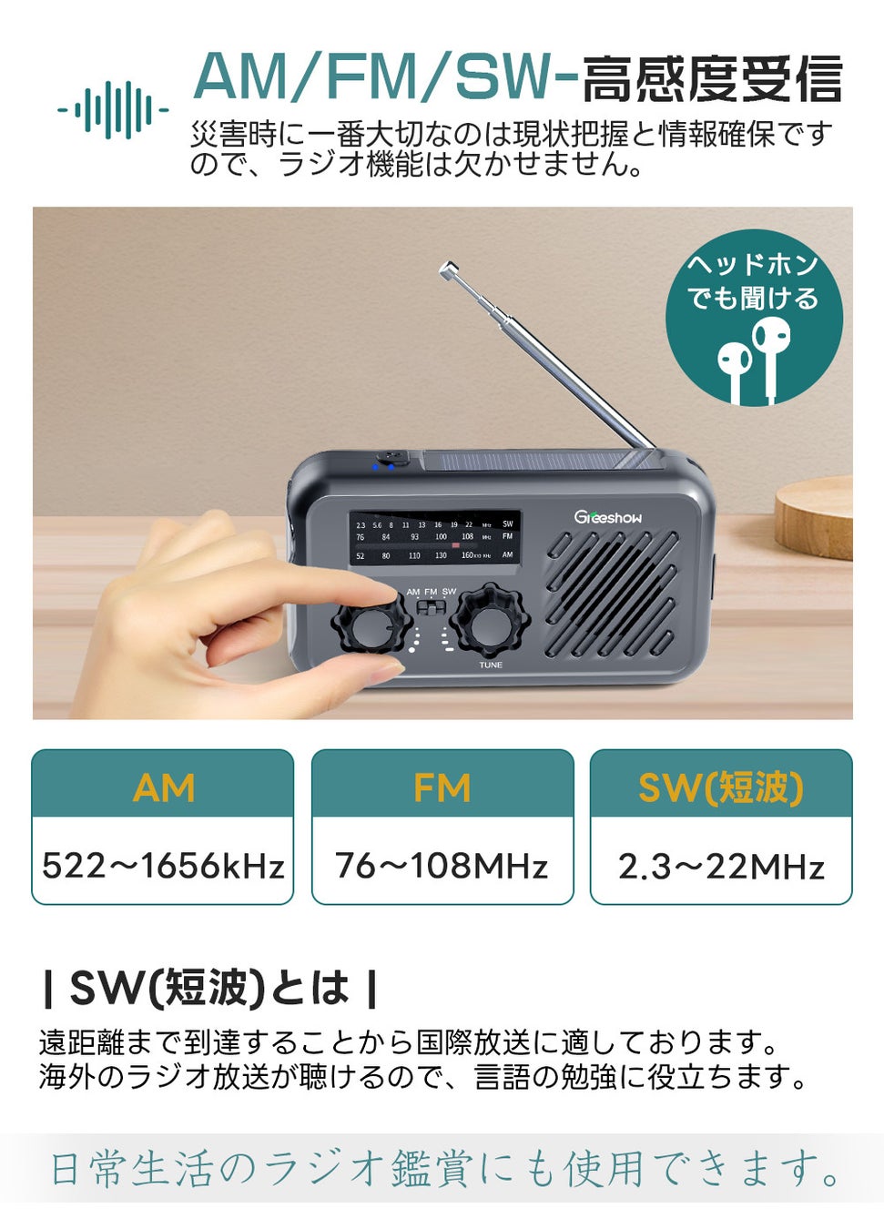【新品登場】有線イヤホンでFMを聴くことが可能★Greeshow \GS-297携帯防災ラジオ/ タイムセールを開催中!AM/FM/SW/ワイドFM SOSサイレン ライト機能