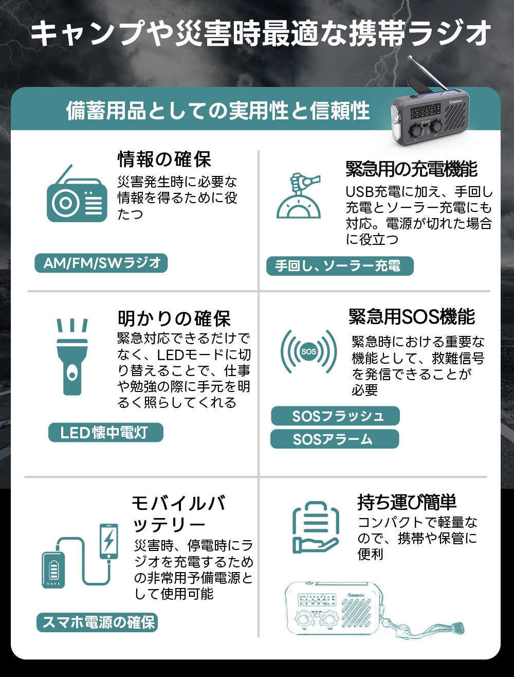 災害時に頼りになる機能が満載の防災ラジオで、安全な生活をサポートします。