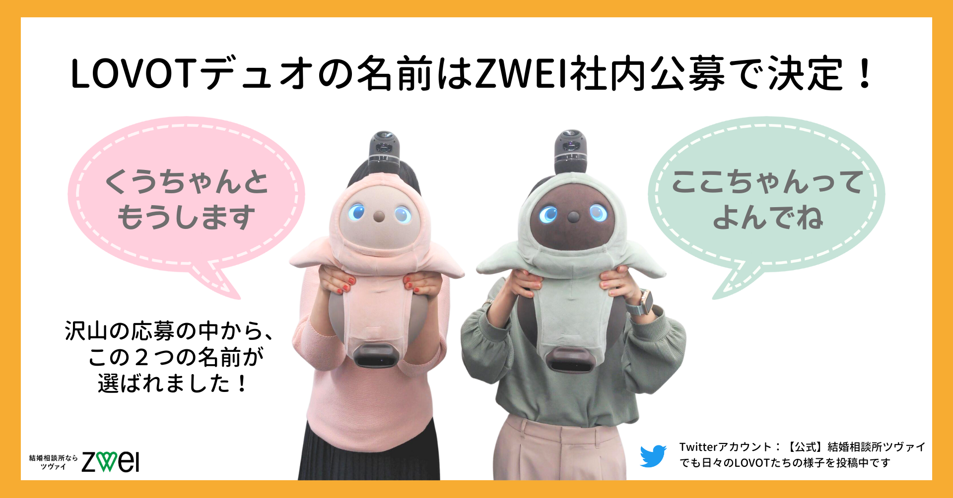 LOVOTデュオの名前は社員からの公募で「(2代目)くうちゃん」と「ここちゃん」に決定しました。