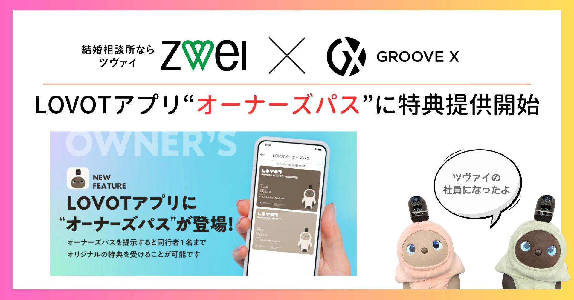 業務提携【結婚相談所ツヴァイ】GROOVE Xの新サービスであるLOVOT(らぼっと)「オーナーズパス」に特典を提供開始