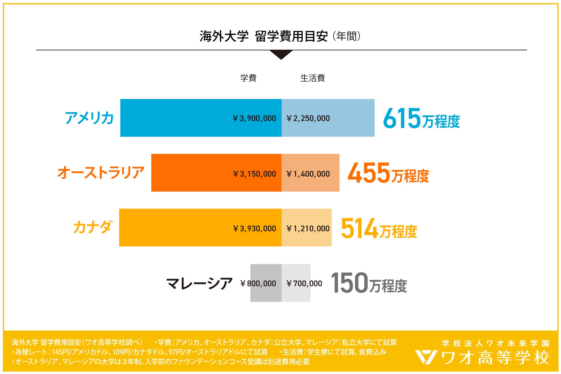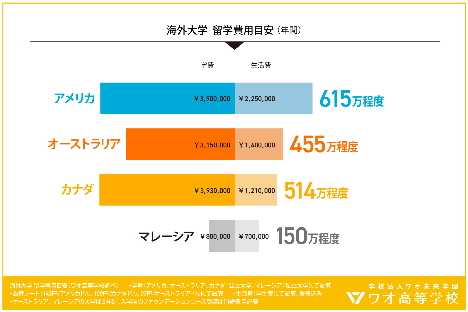 (参考)海外大学 留学費用比較 (ワオ高校調べ)