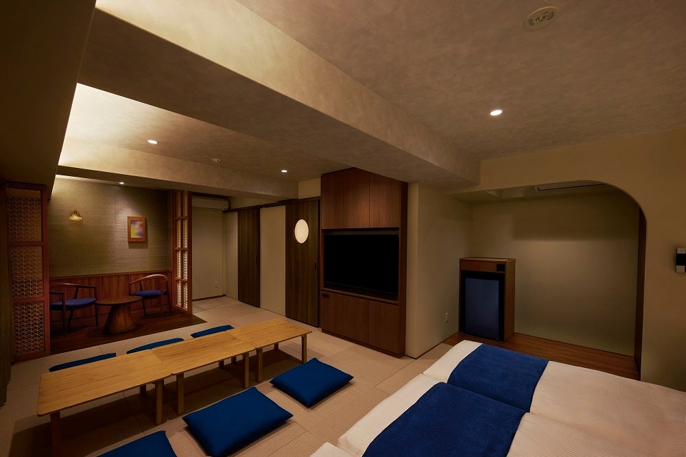 リニューアルした客室は、最大6名様で宿泊できる43平米の客室をはじめ、パートナーとのご旅行やおひとりで過ごす滞在に快適な23平米の客室まで合計6タイプをラインアップ。「桜ーSAKURAー」、「瑠璃ーRURIー」と名付けられた特別室には広縁のようなくつろぎスペースを設けております。