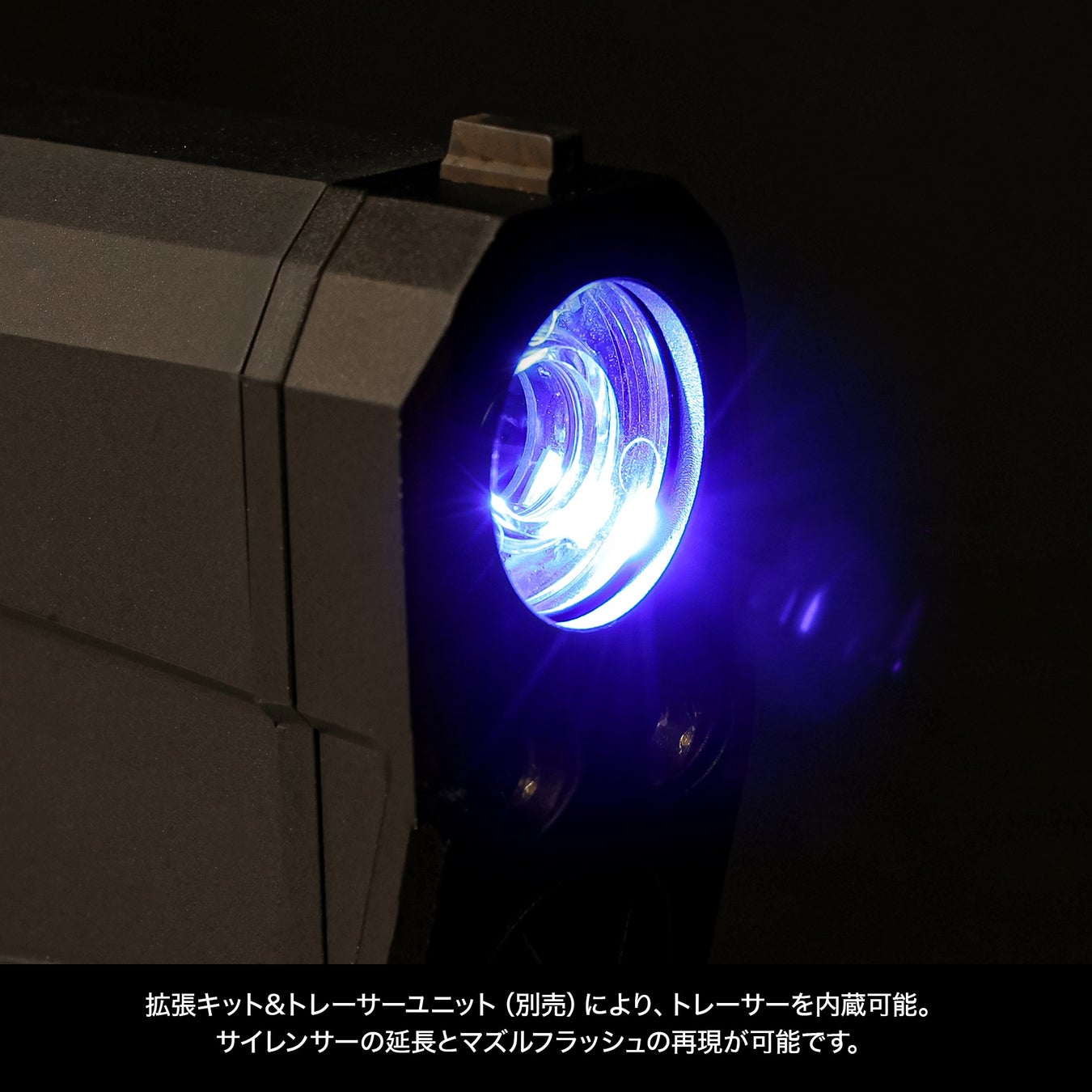 別売りの専用トレーサーを使用することで、本製品を装着した状態でも蓄光BB弾の発光機能を使用することが可能です。