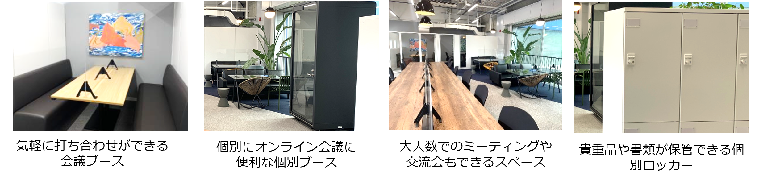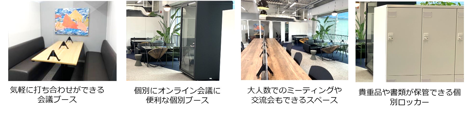 釧路川を眼下に見渡すワークカウンター、オープンデスク、WEB会議用個室防音ブース(ワークポッド1台)、吸音材付き会議スペース、打合わせ等個室ミーティングスペース、ソファスペース、コンシェルジュカウンター、TVモニター、プロジェクター、多機能型電源コンセント、ホワイトボードウォール、 ロッカー、冷暖房換気設備