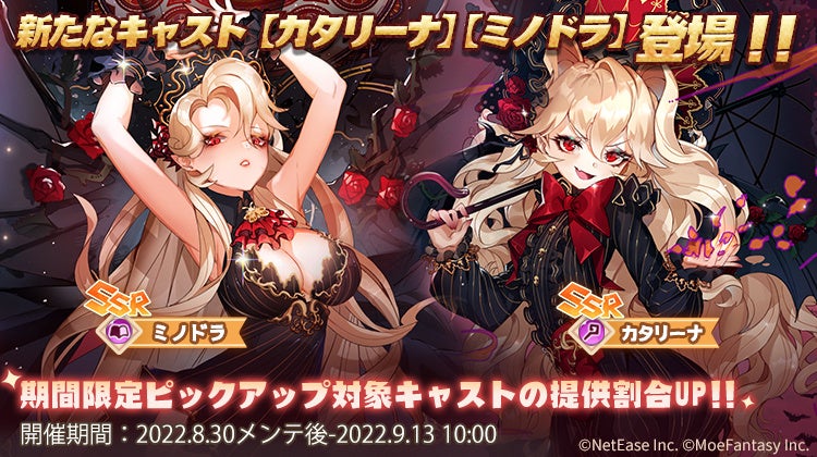 限定SSRキャスト「カタリーナ」と「ミノドラ」は、イベント限定募集で登場します。新キャラを入手できるのは今だけです!