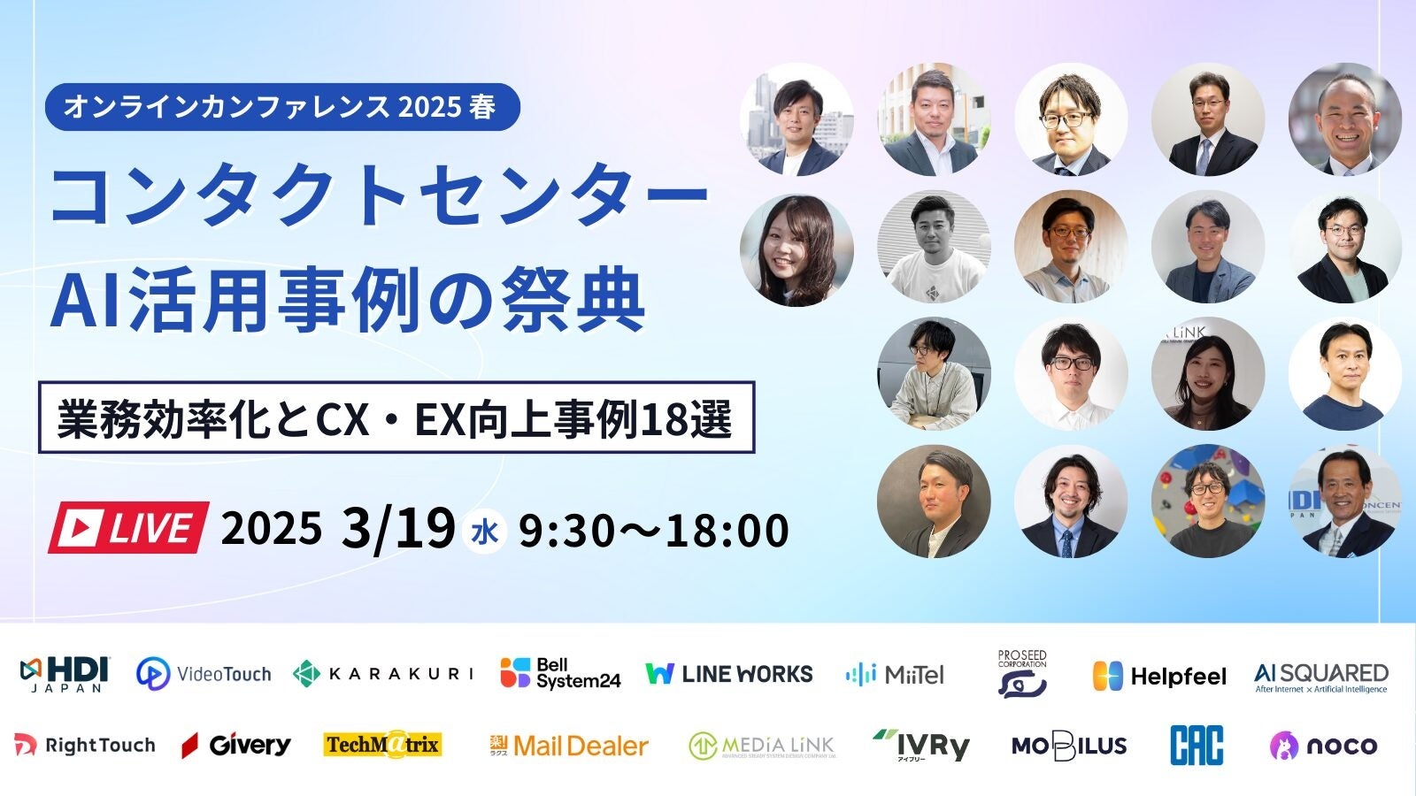 【申込受付中】コンタクトセンター × AI活用事例の祭典 2025春「業務効率化とCX・EX向上事例18選」 ~ 無料オンラインカンファレンス開催のお知らせ ~