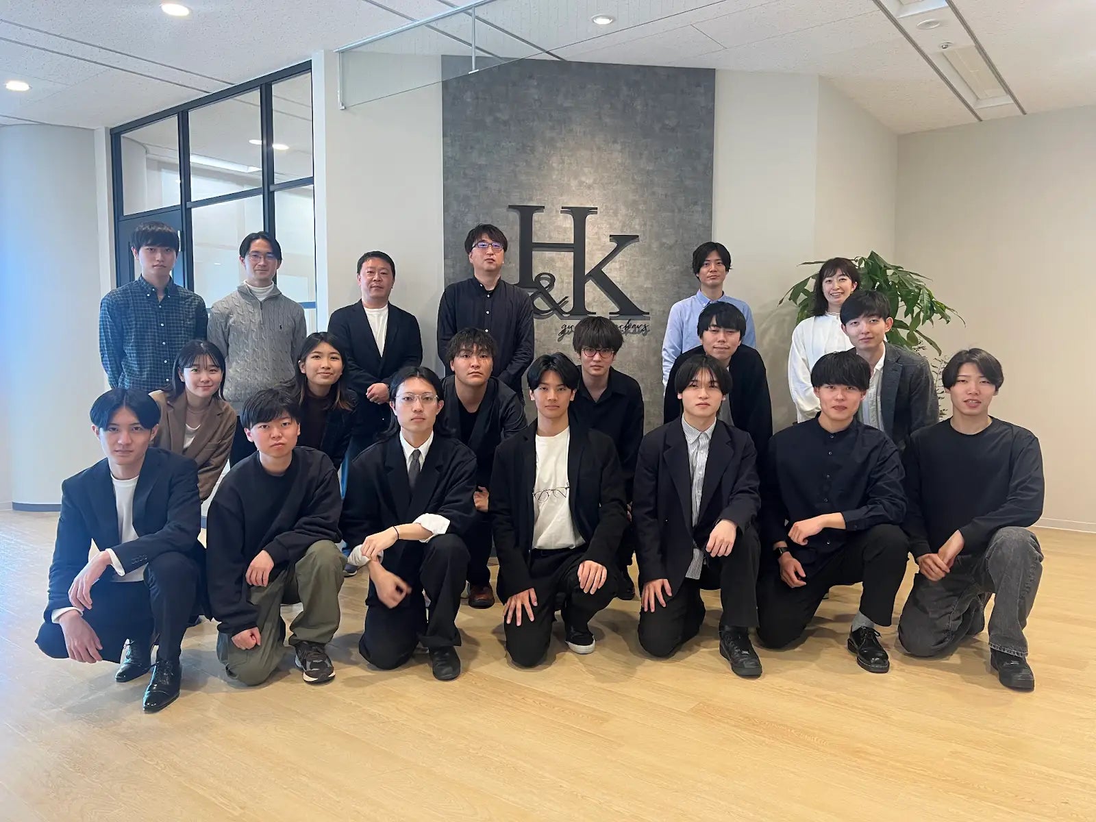 2023年4月3日(月)、株式会社H&Kの本社で入社式が執り行われ、代表取締役CEO安藤弘樹による祝辞、取締役COO田邊幸大による祝辞、新入社員挨拶、チーム対抗イベント企画を行いました。
