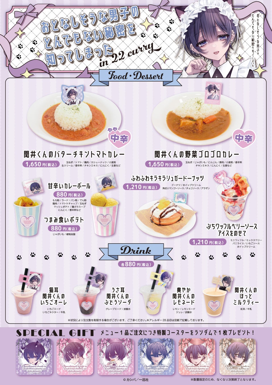 ネコ耳メイドやウサ耳ゆかた姿の特別な描き下ろしを使用したグッズやオリジナルメニューをご用意!「『おとなしそうな男子のとんでもない秘密を知ってしまった』 in 22カレー」開催決定!