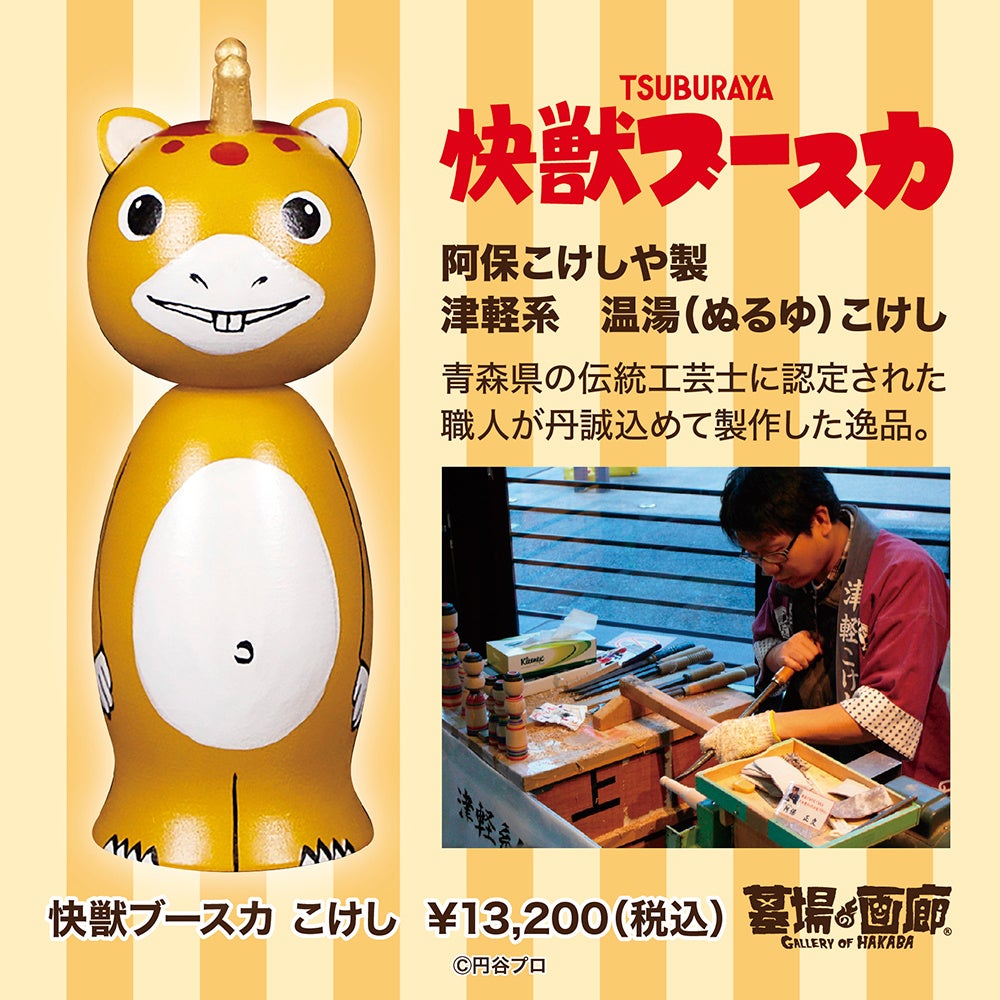 青森県の伝統工芸士に認定されている工人・阿保正文氏が「快獣ブースカ」を津軽黒石こけしで表現。丹誠込めて1点1点手作りをしており、温かみを感じられる仕上がりとなっている。歴史ある伝統工芸と快獣ブースカのコラボレーションが新たに誕生。