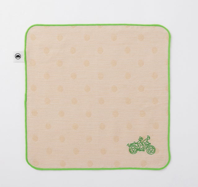“木糸”で作ったハンカチです。やわらかい風合いで、毛羽立ちが少ないため、赤ちゃんや敏感肌の方にも安心してお使いいただけます。やさしいり色に、さりげないワンポイントがデザインされた、かわいらしいハンカチです。軽量で、使うほどにやわらかい肌触りになります。ちょっとしたプレゼントにもおすすめの商品です。