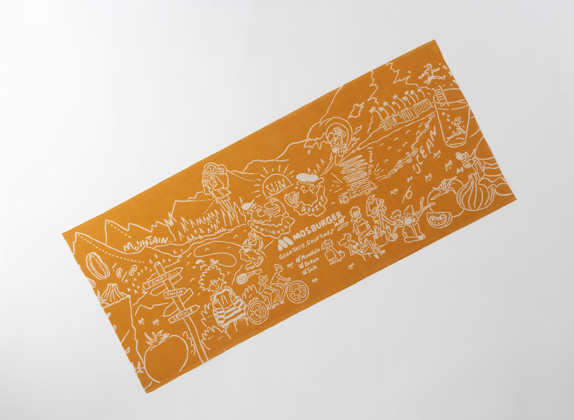 *手ぬぐいとハンカチのイラストは、“MOS”の世界観をイメージしたもので、イラストレーターのイソガイ ヒトヒサさんに描いていただきました。野菜や自然、生活を楽しむ人々を表現しています。