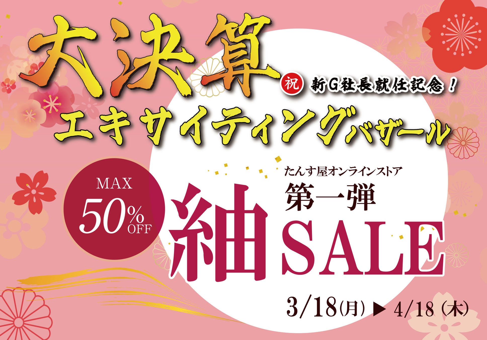 たんす屋春のイベント「中村G社長就任記念、大決算エキサイティングバザール」(2024年3月28日~3月31日浅草台東館)に合わせまして、たんす屋オンラインストアでは、2024年3月18日(月)~2024年4月18日(木)の期間『中村G社長就任記念、大決算エキサイティングバザール<第一弾紬セール>』を開催中です。