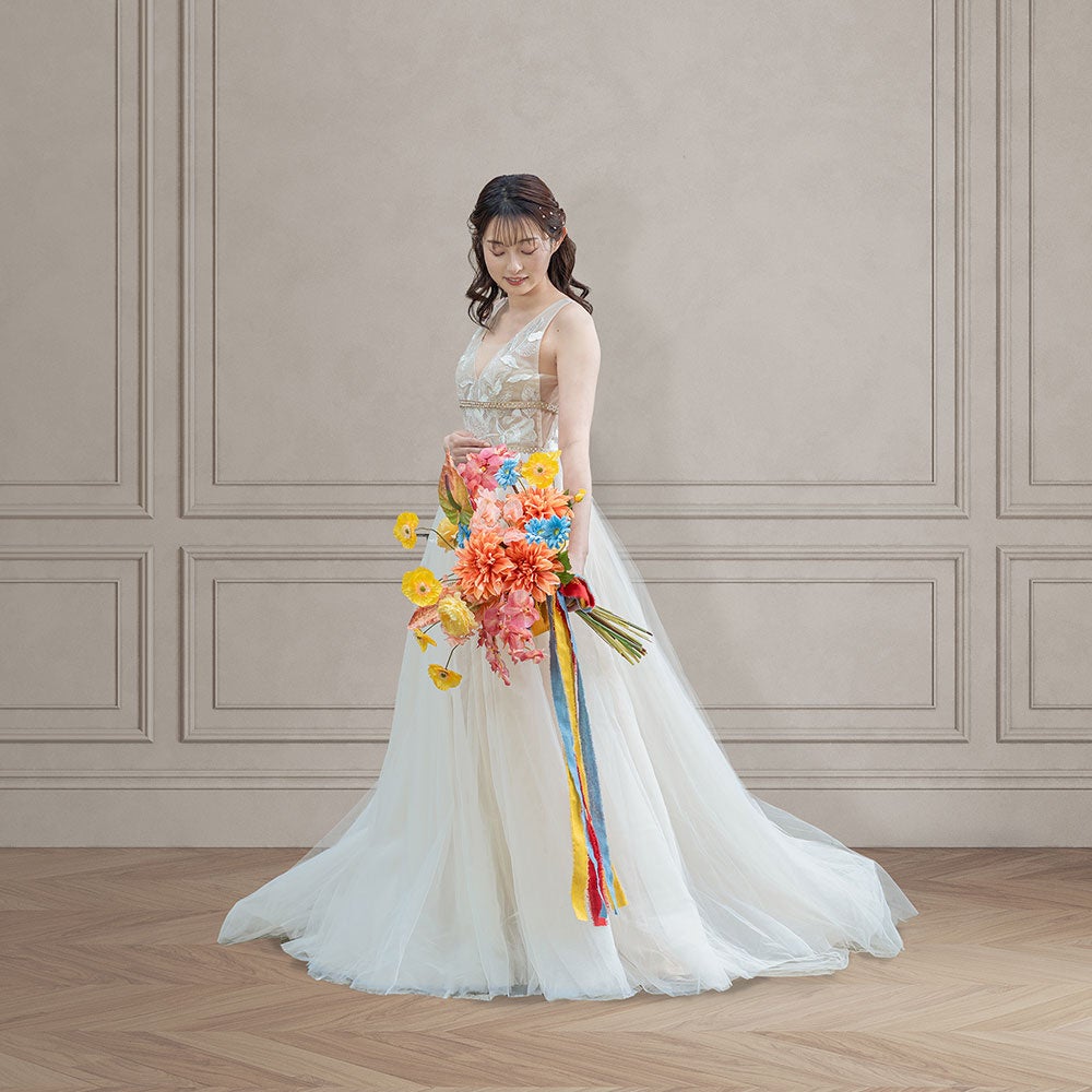 屋外ロケーションでの撮影や長時間の移動など、アクティブな場面が増える中、どんな環境でもベストな状態を維持できるよう、耐久性に優れたアーティフィシャルフラワー(造花)を採用。そこに、日比谷花壇のフローリストがこれまで培ってきた感性を注ぎ込み、最新トレンドと撮影時の利便性を両立させた、新しい価値を持つブーケを提案します。